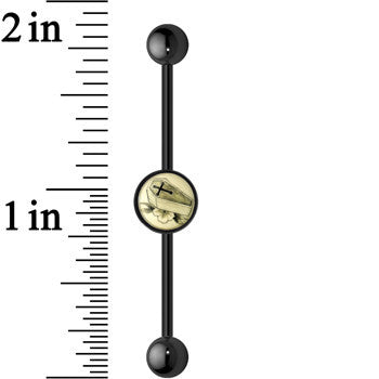 14G Black Glow in the Dark Coffin Flower Industrial Barbell 37mm