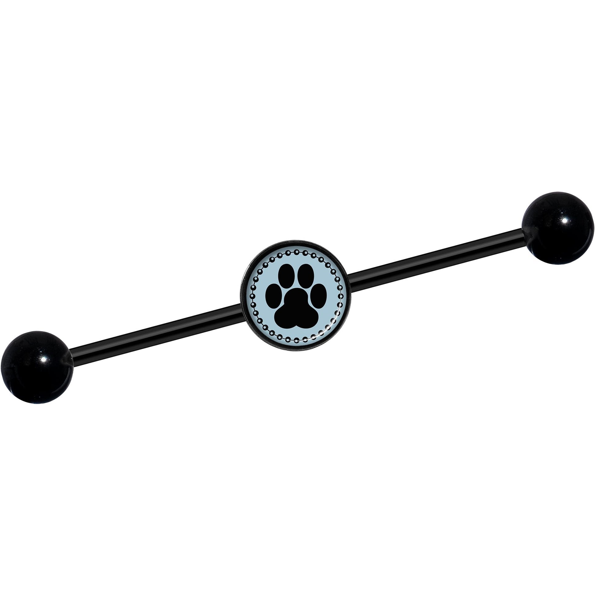 14 Gauge Black on Blue Paw Print Black Industrial Barbell 37mm