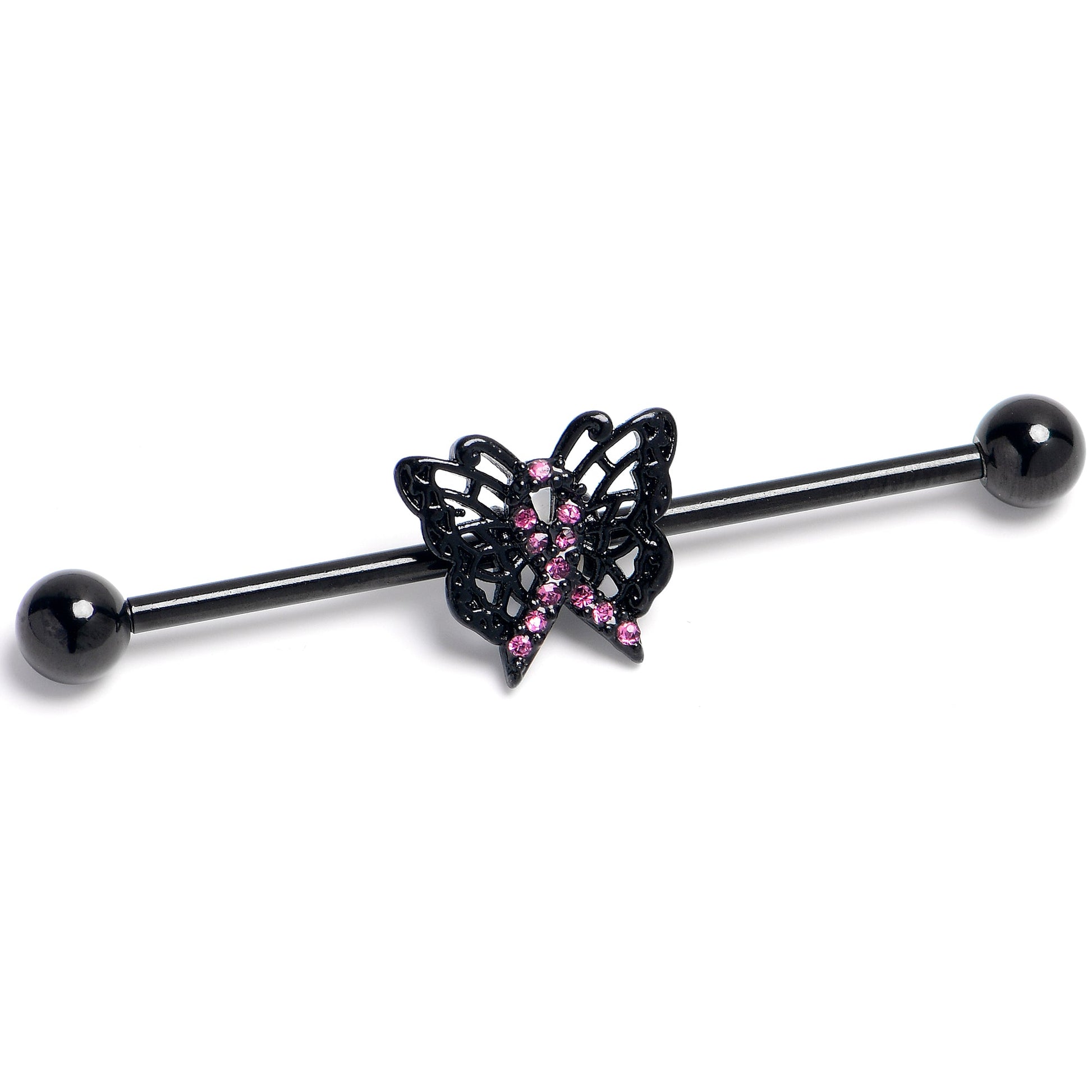 14 Gauge Black Purple Beauty in Flight Butterfly Industrial Barbell 38mm
