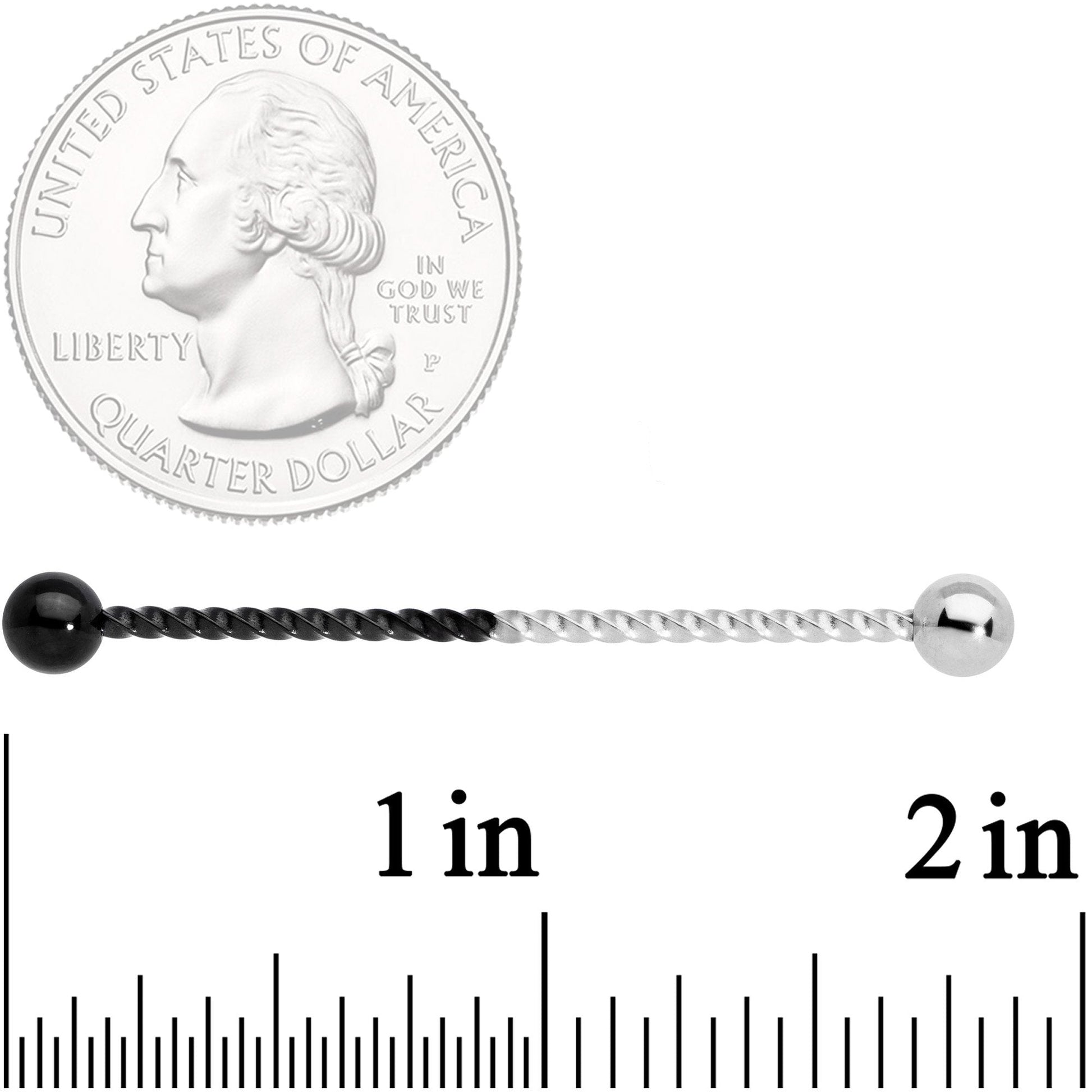 This 14 gauge industrial earring gives you a look that's subtle but still has plenty of detail to keep your attention! It's made with a 1 1/2" half black anodized over 316L surgical grade stainless steel twisted straight barbell and half durable 316L surgical grade stainless steel twisted straight barbell. It has 5mm ball ends. Pop this in your piercing for a look that's subtly colorful...and totally twisted!Specifications