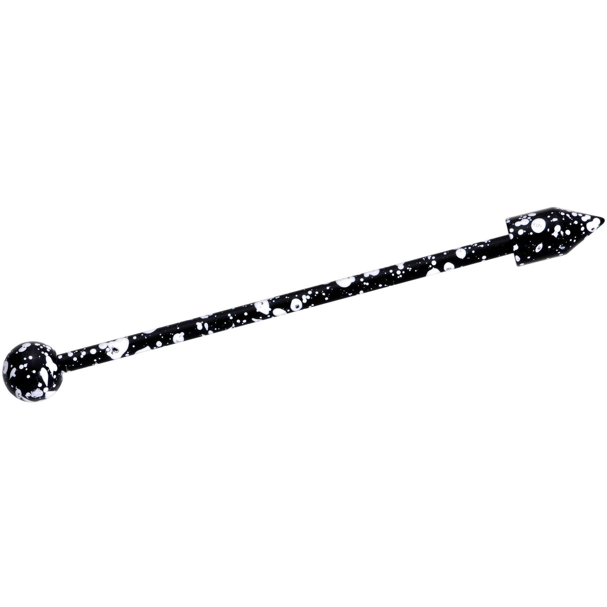 Get right to the point with this uniquely styled 1 1/2" long black and white barbell! With its asymmetrical styling and single arrowhead-shaped end, this 1.6mm piece packs a lot of punch with its black and white plated over 316L surgical grade stainless steel straight barbell! Now no matter what you're wearing, you'll know your industrial piercing looks right on point.Specifications