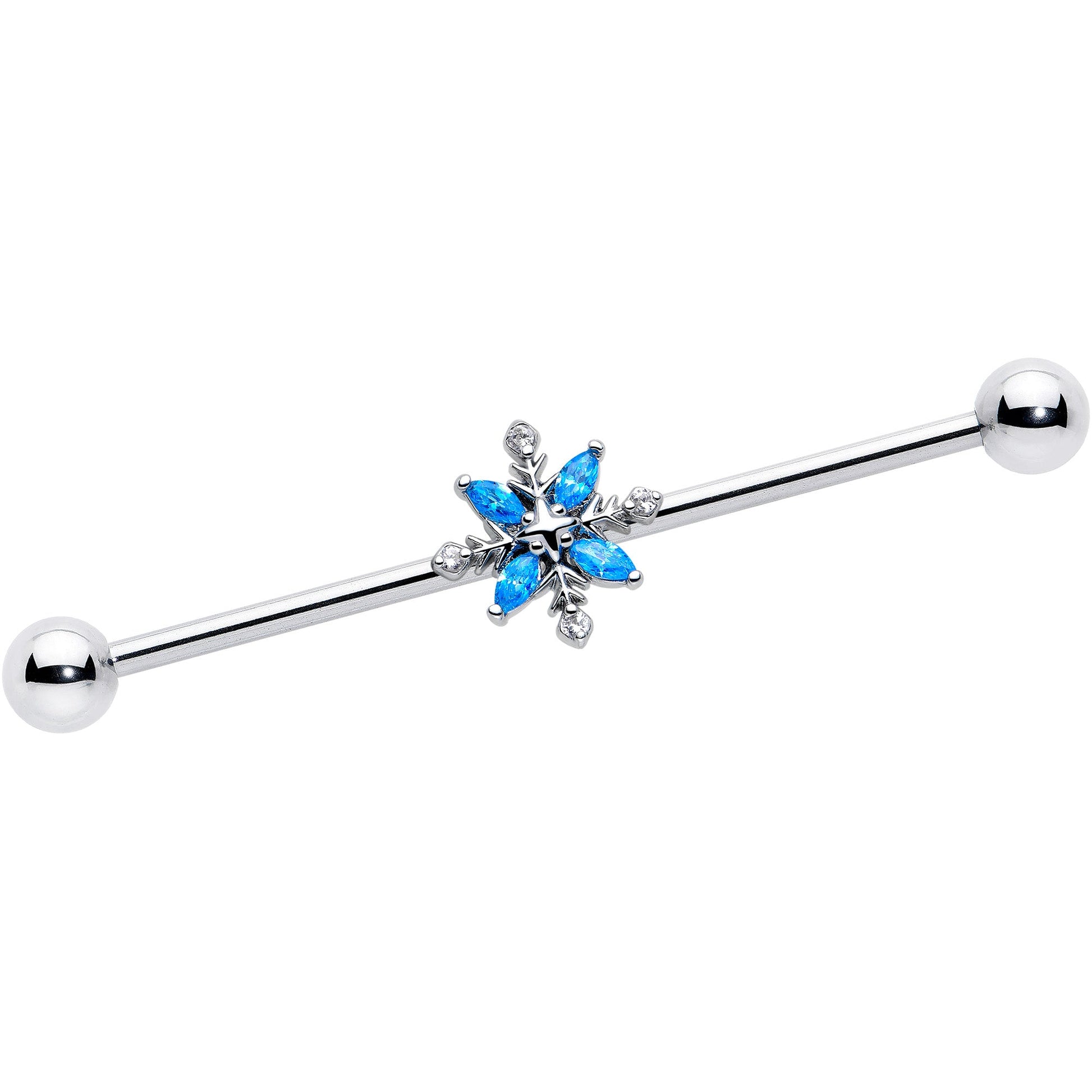 14 Gauge Blue CZ Gem Classic Flower Industrial Barbell 38mm