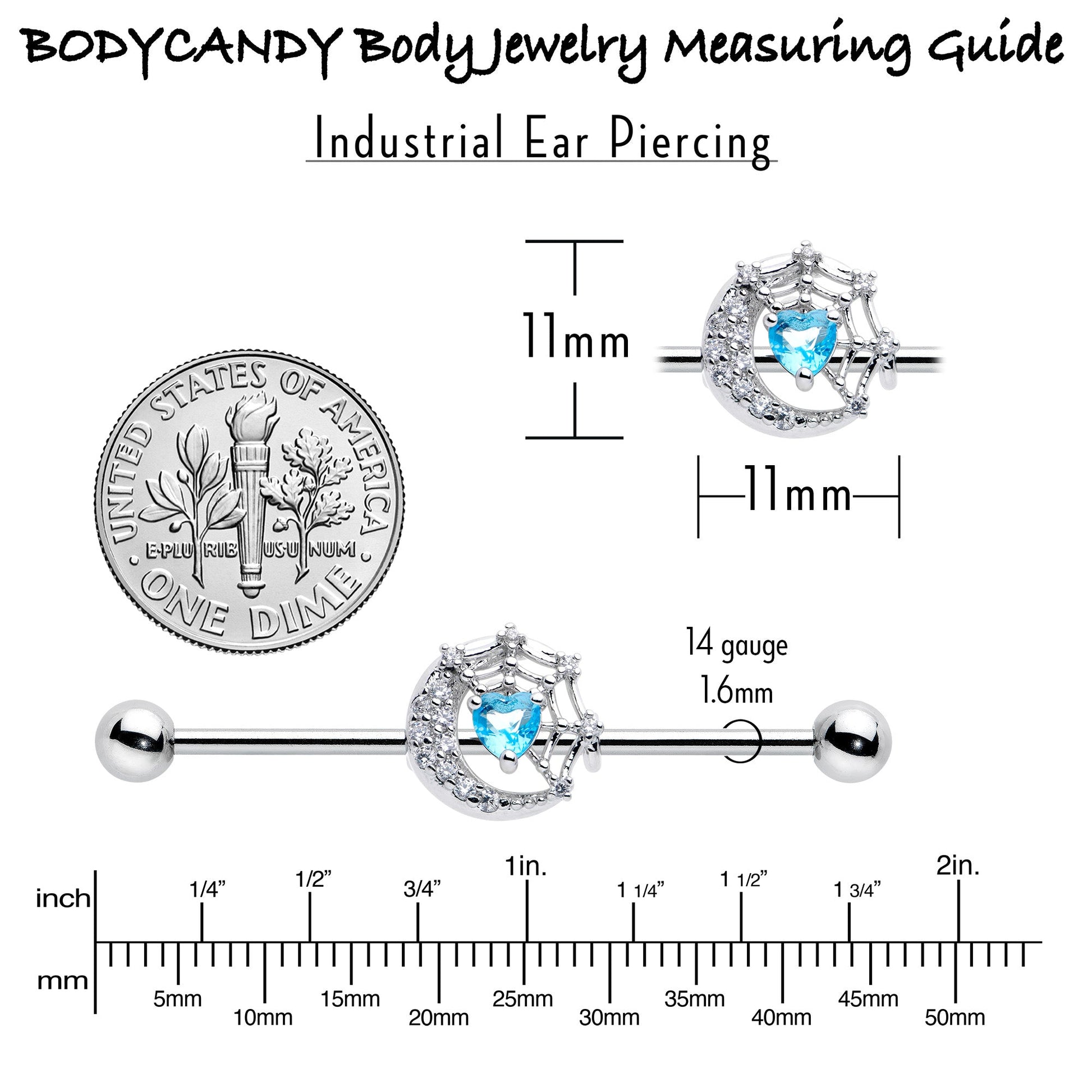 14 Gauge Blue CZ Gem Heart Web Moon Industrial Barbell 38mm