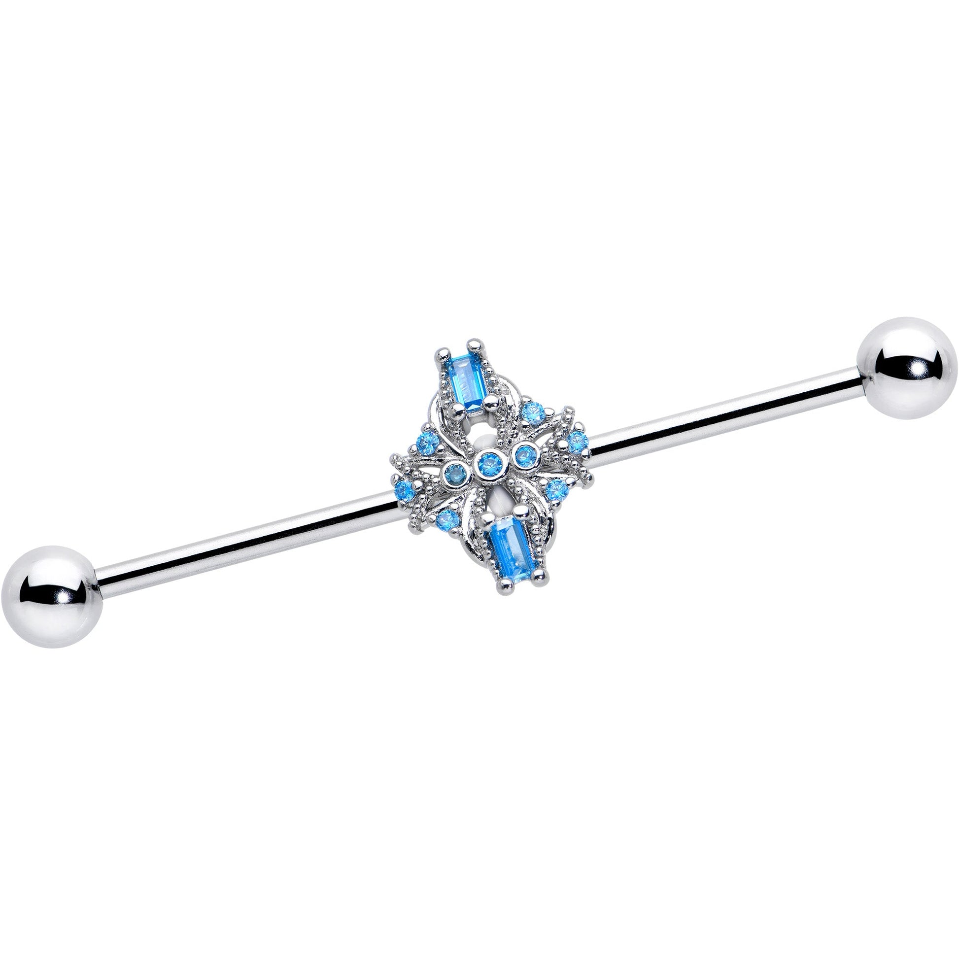 14G Blue CZ Gem Opulent Cross Industrial Barbell 38mm