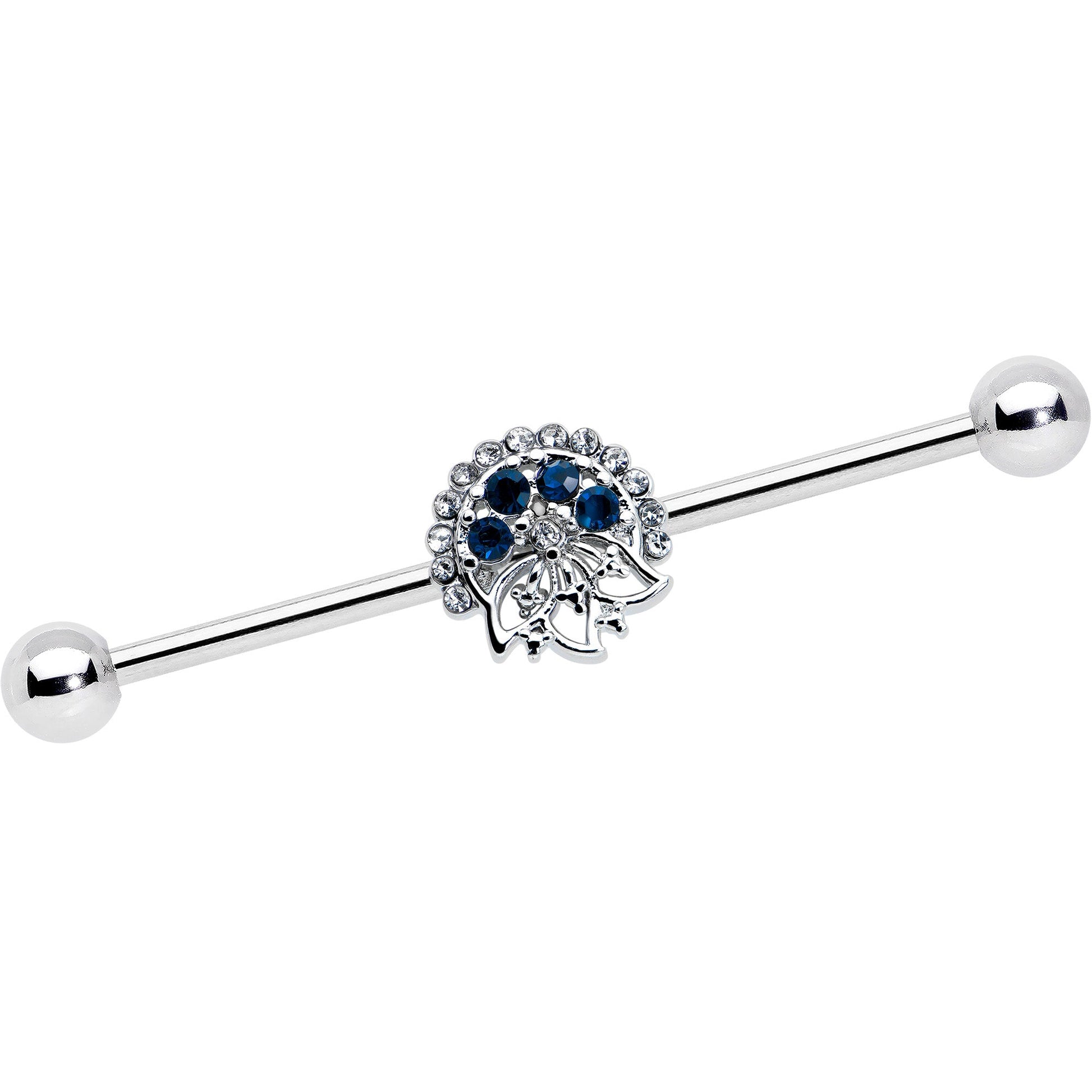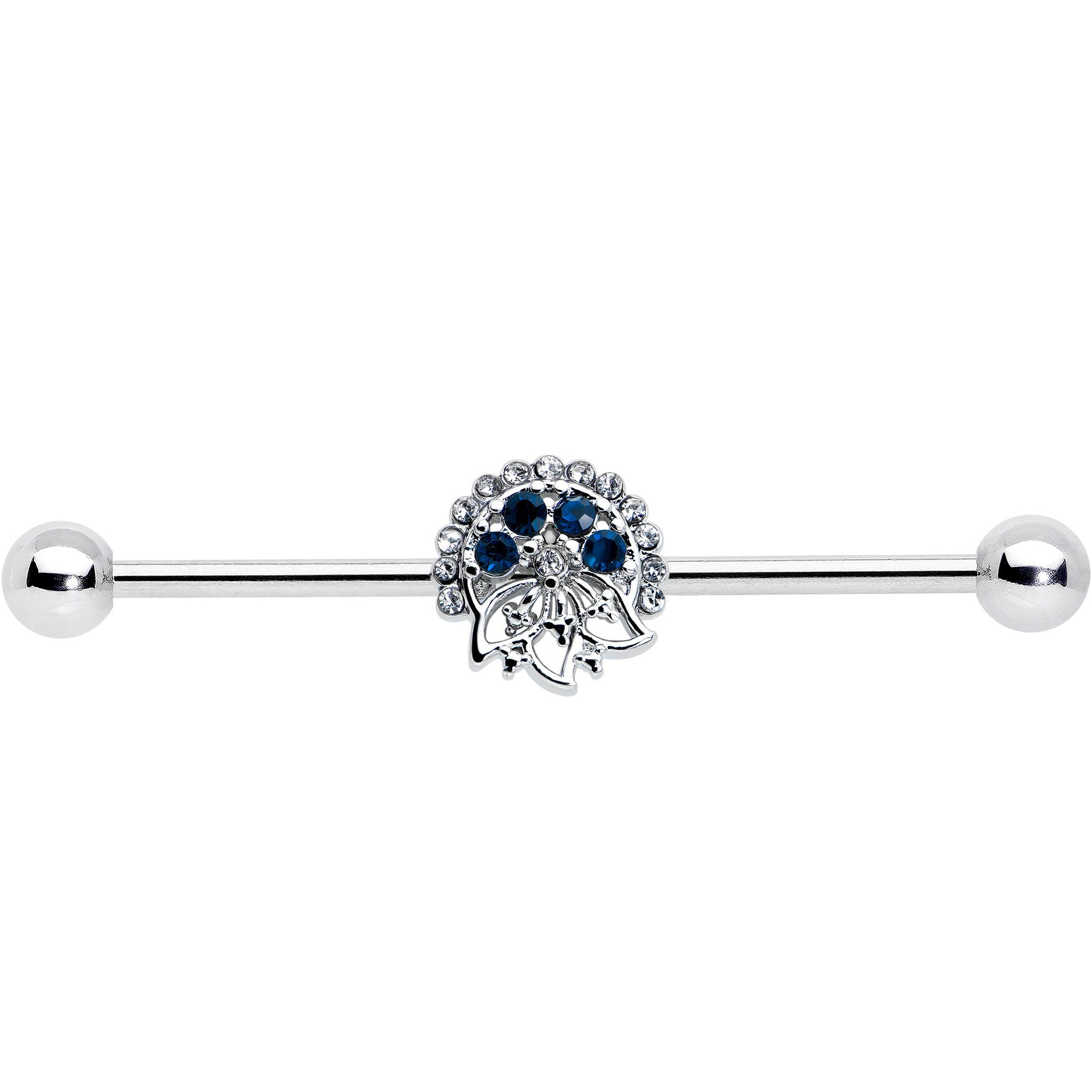 14 Gauge Blue Gem Abstract Arch Industrial Barbell 38mm