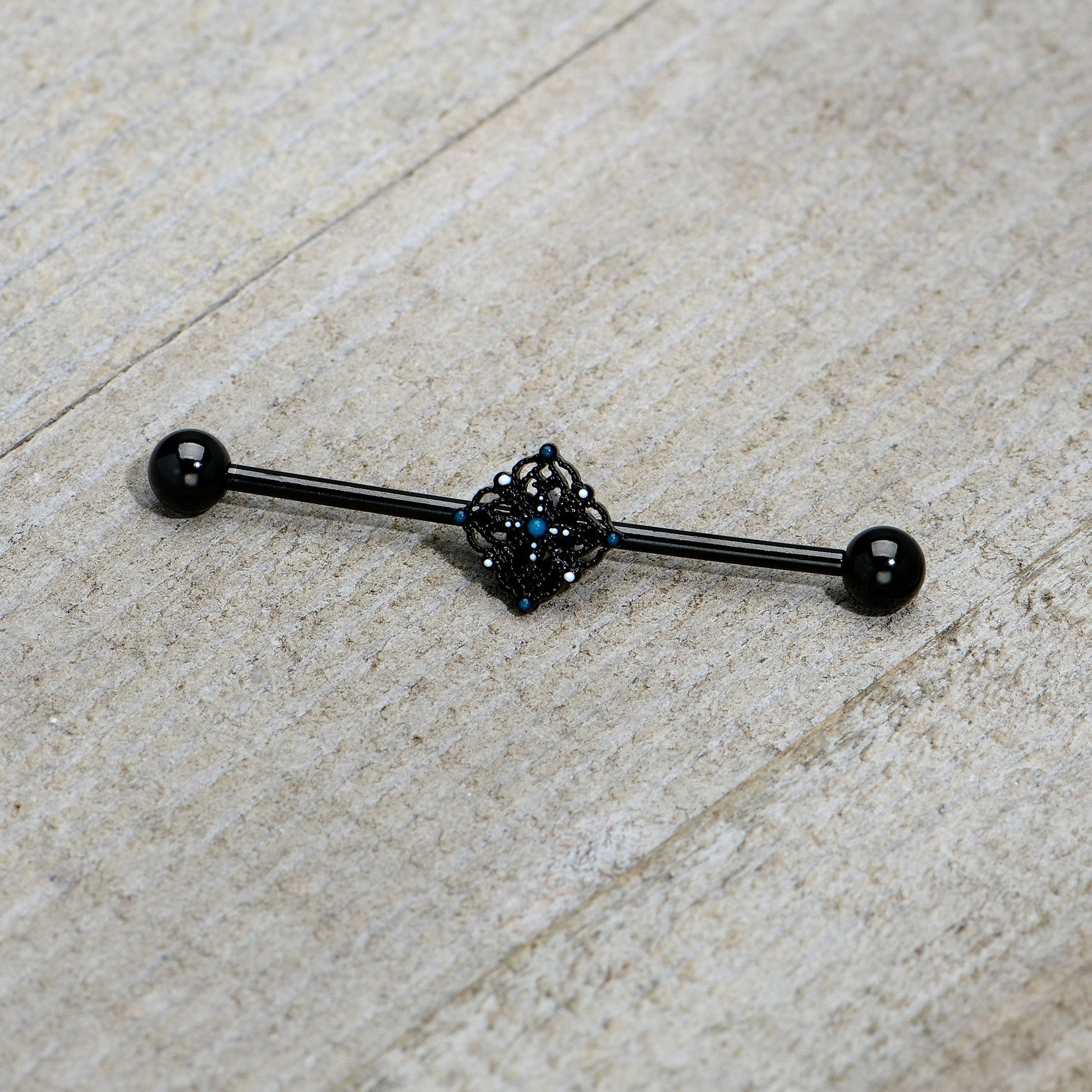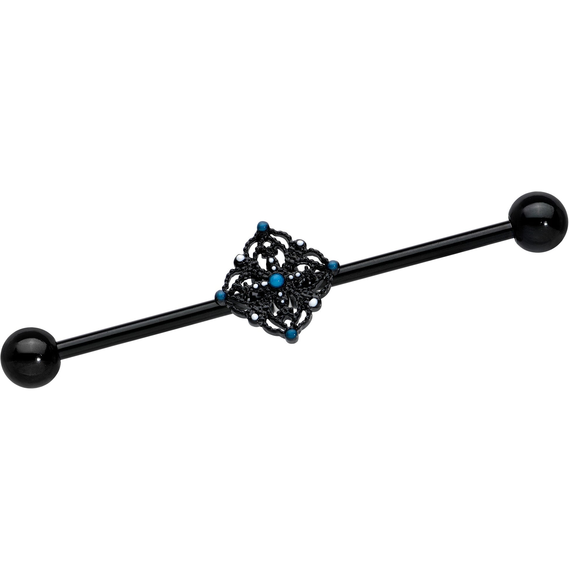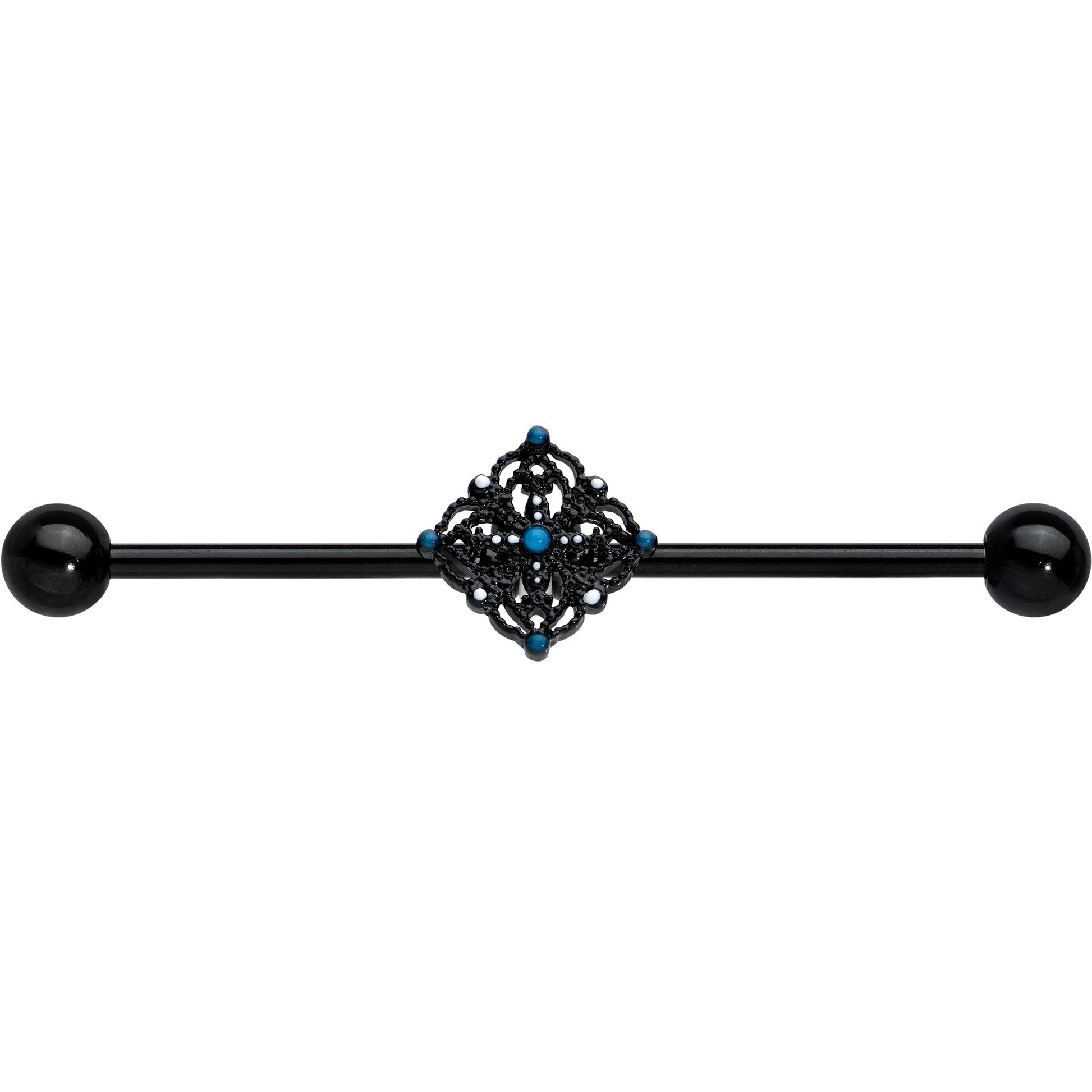 14 Gauge Blue Gem Black Lacy Rhombus Industrial Barbell 38mm