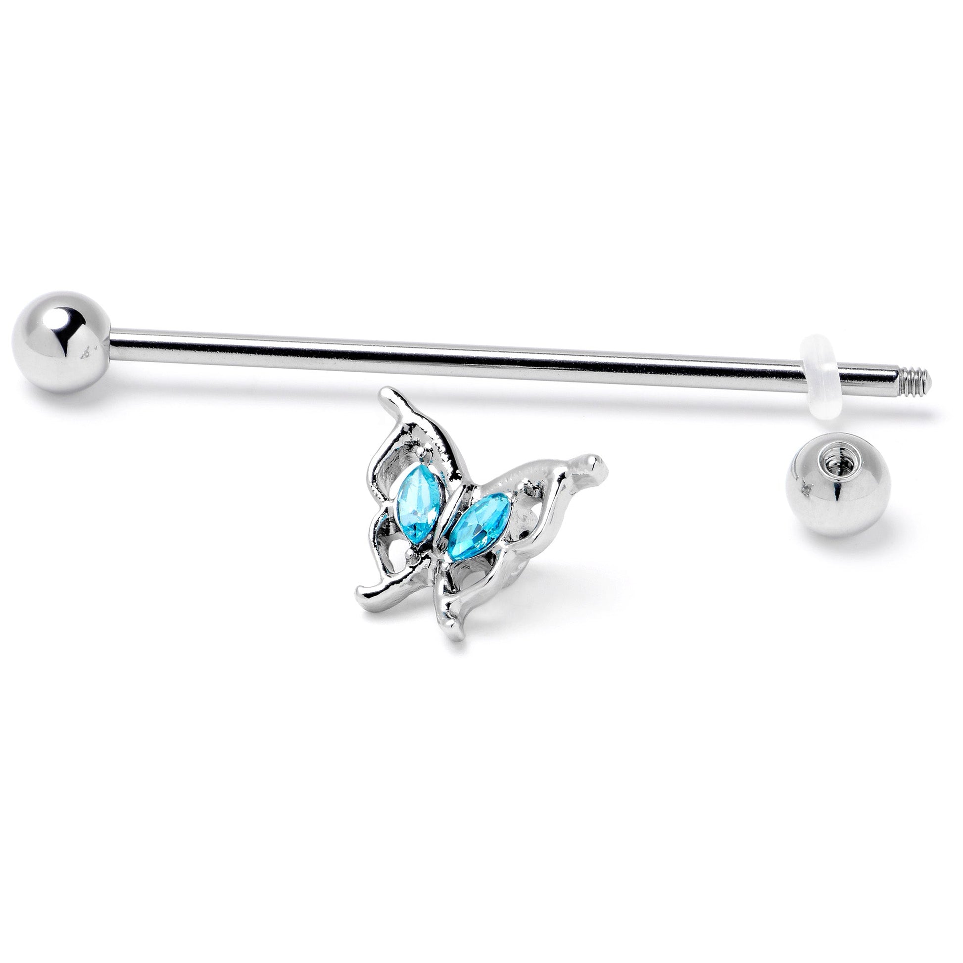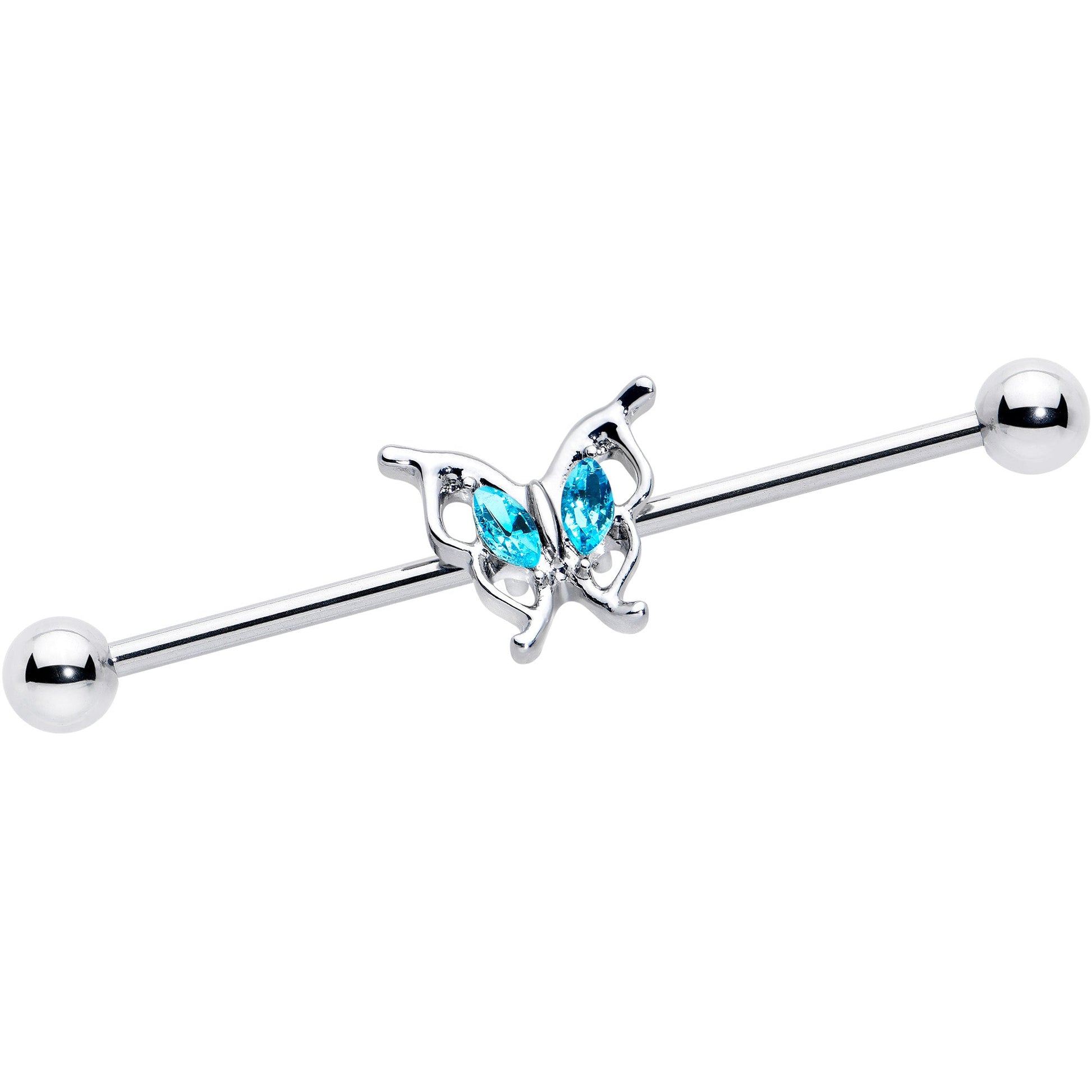 14 Gauge Blue Gem Fancy Fab Butterfly Industrial Barbell 38mm