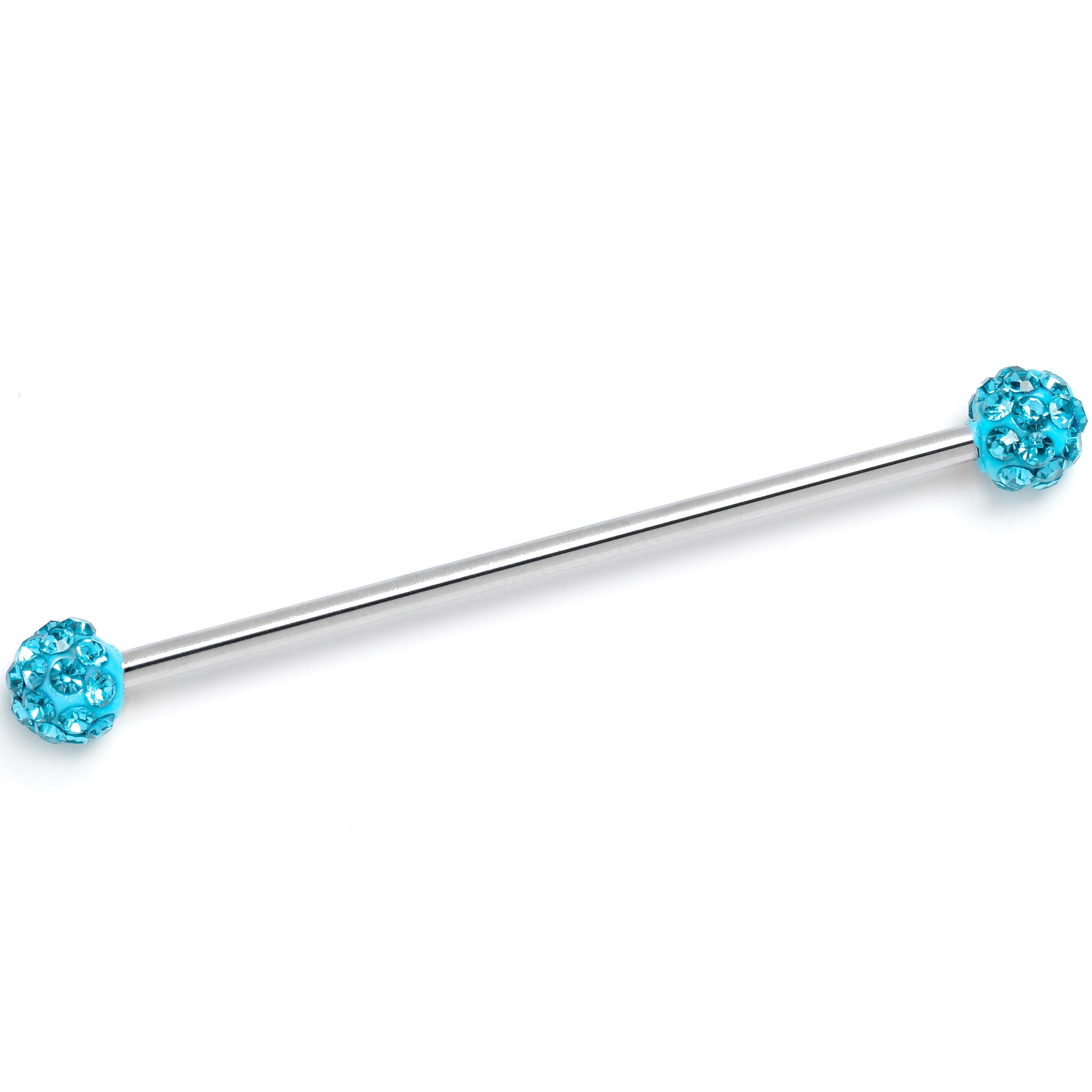 Get some style that all can see with this 14 gauge helix barbell. It is made with a 1 1/2 inch 316L surgical grade stainless steel straight barbell. It features 5mm ball ends that are paved with blue gems for a look reminiscent of a disco ball and they are internally threaded for maximum comfort on insertion and removal. Make everyone stand up and take notice of your classic new look with this stylish and simple barbell earring.Specifications