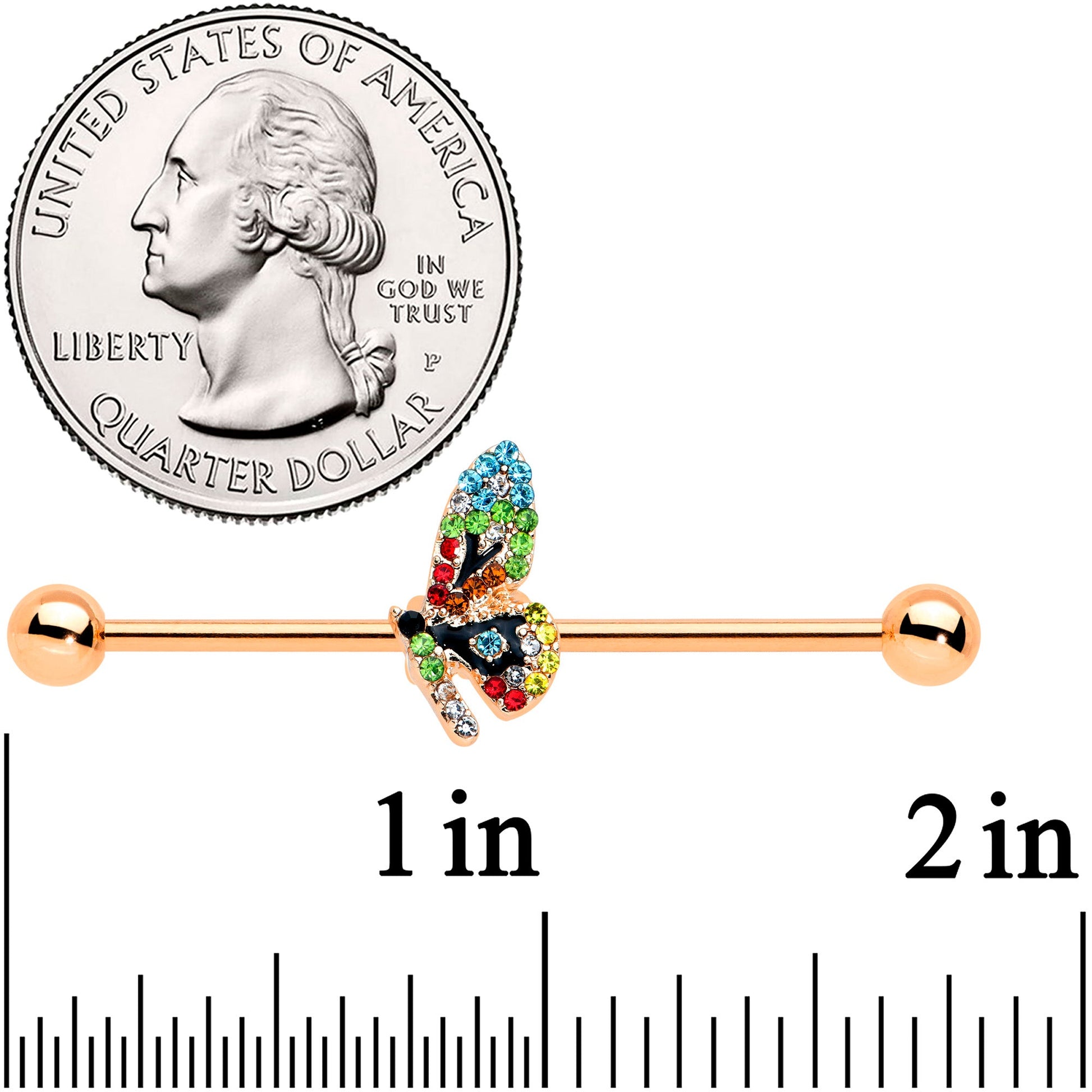 14 Gauge Blue Gem Rose Gold Tone Dragonfly Industrial Barbell 38mm