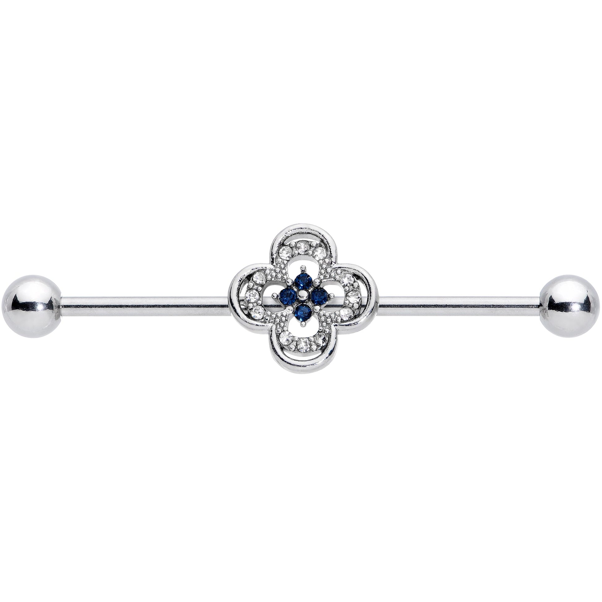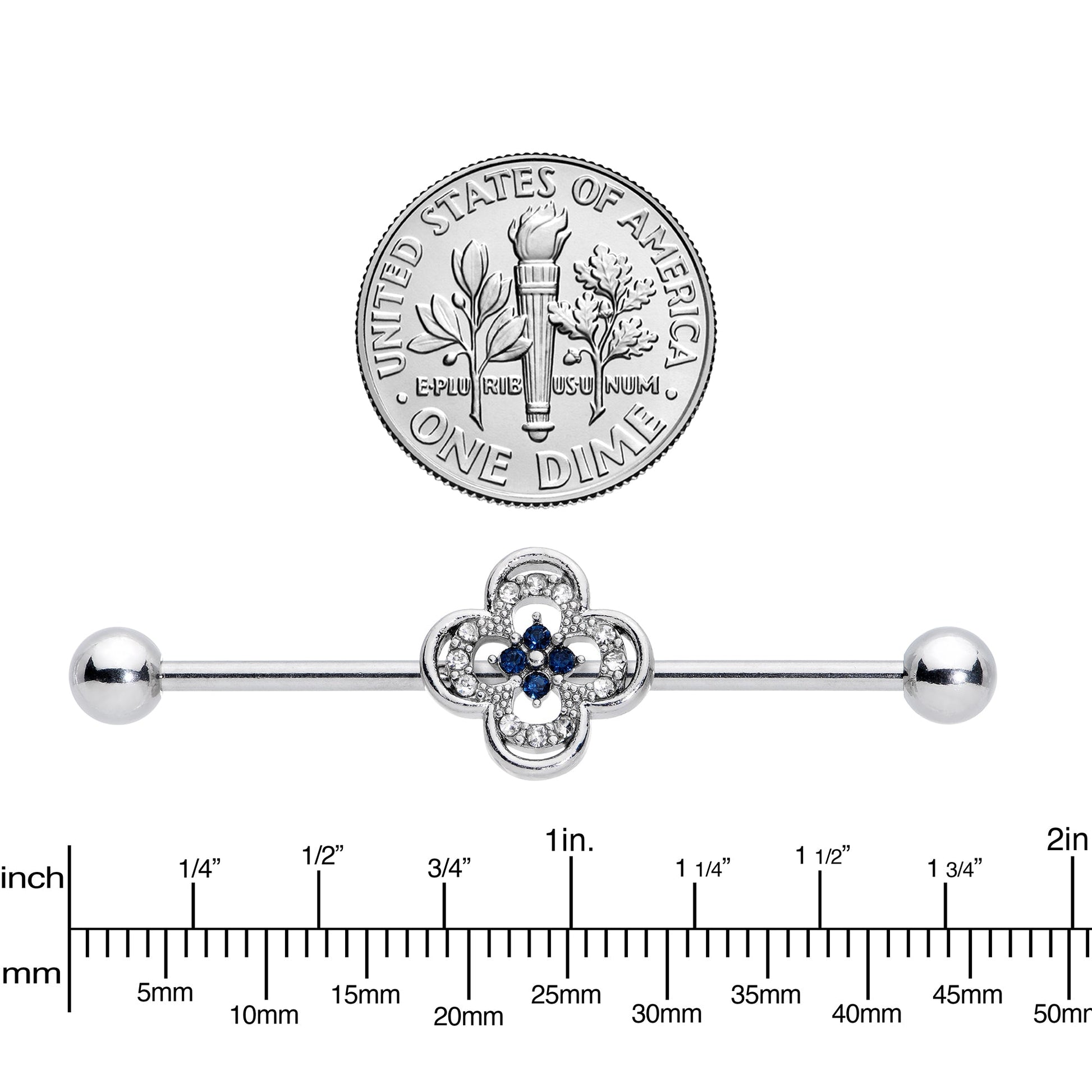 14 Gauge Blue Gem Stylized Deco Cross Industrial Barbell 38mm