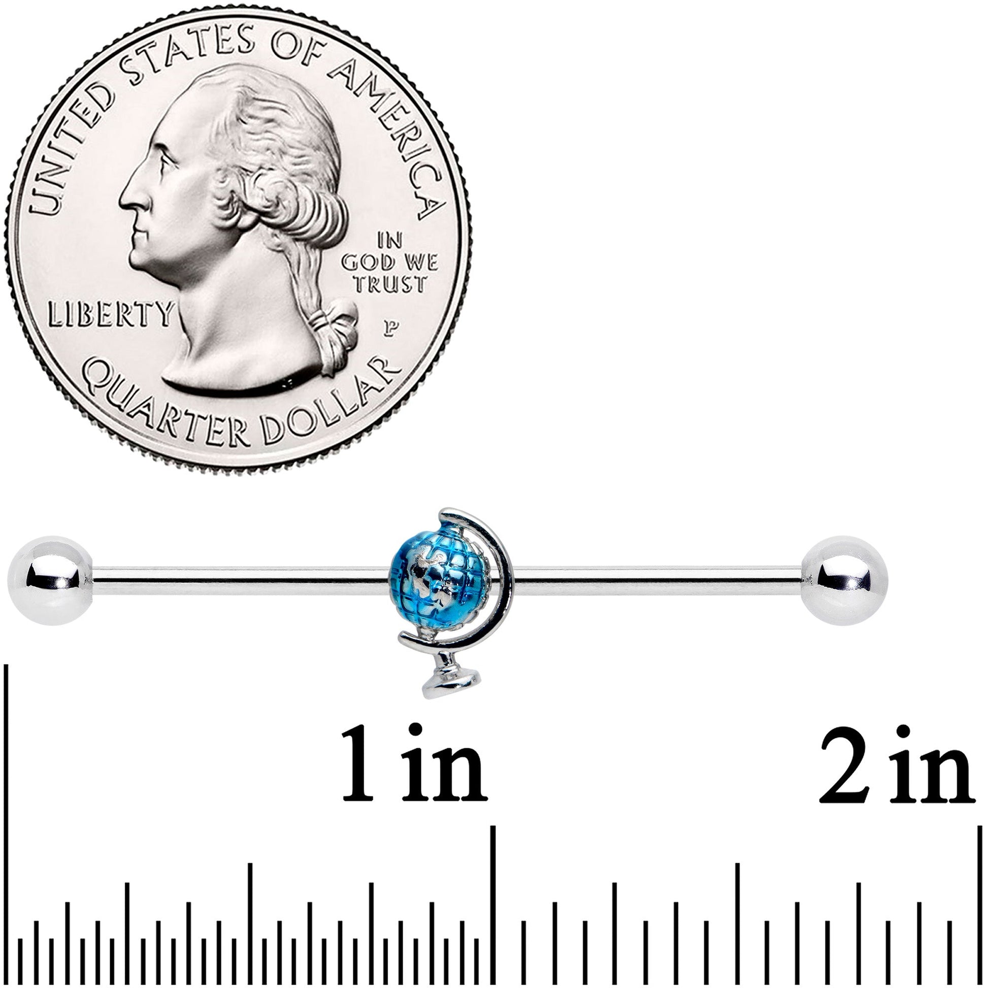 14 Gauge Blue Globe Planet Earth Industrial Barbell 38mm