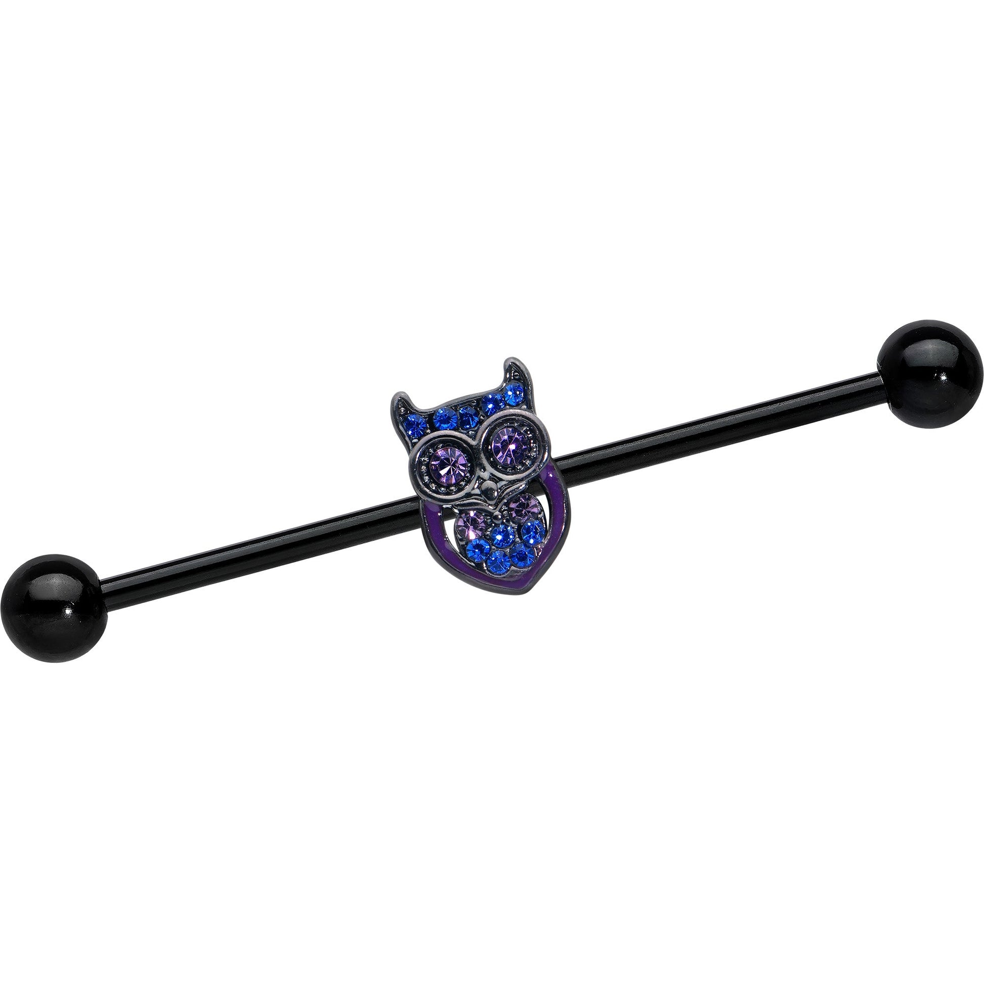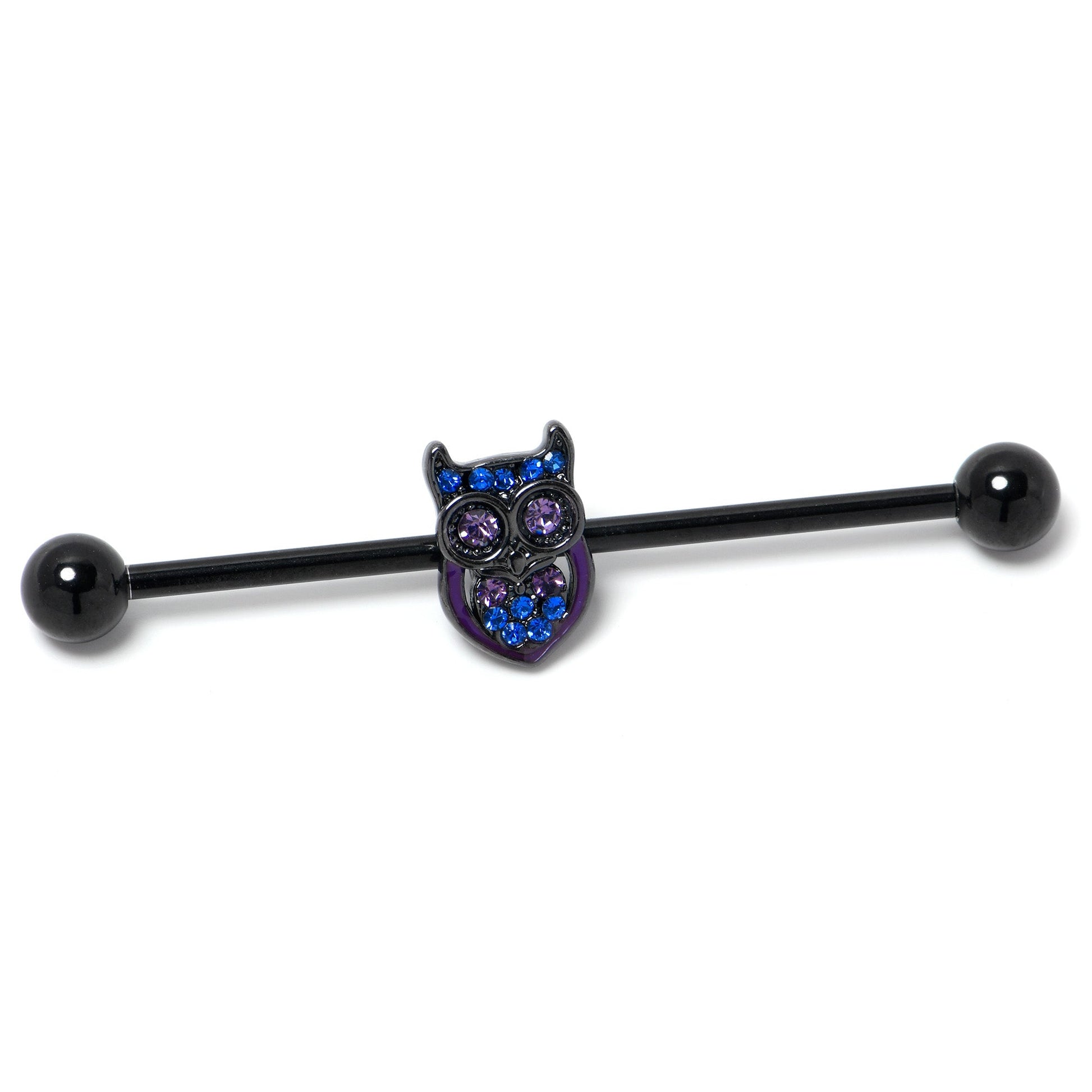 14G Blue Purple Gem Black Opulent Owl Industrial Barbell 38mm