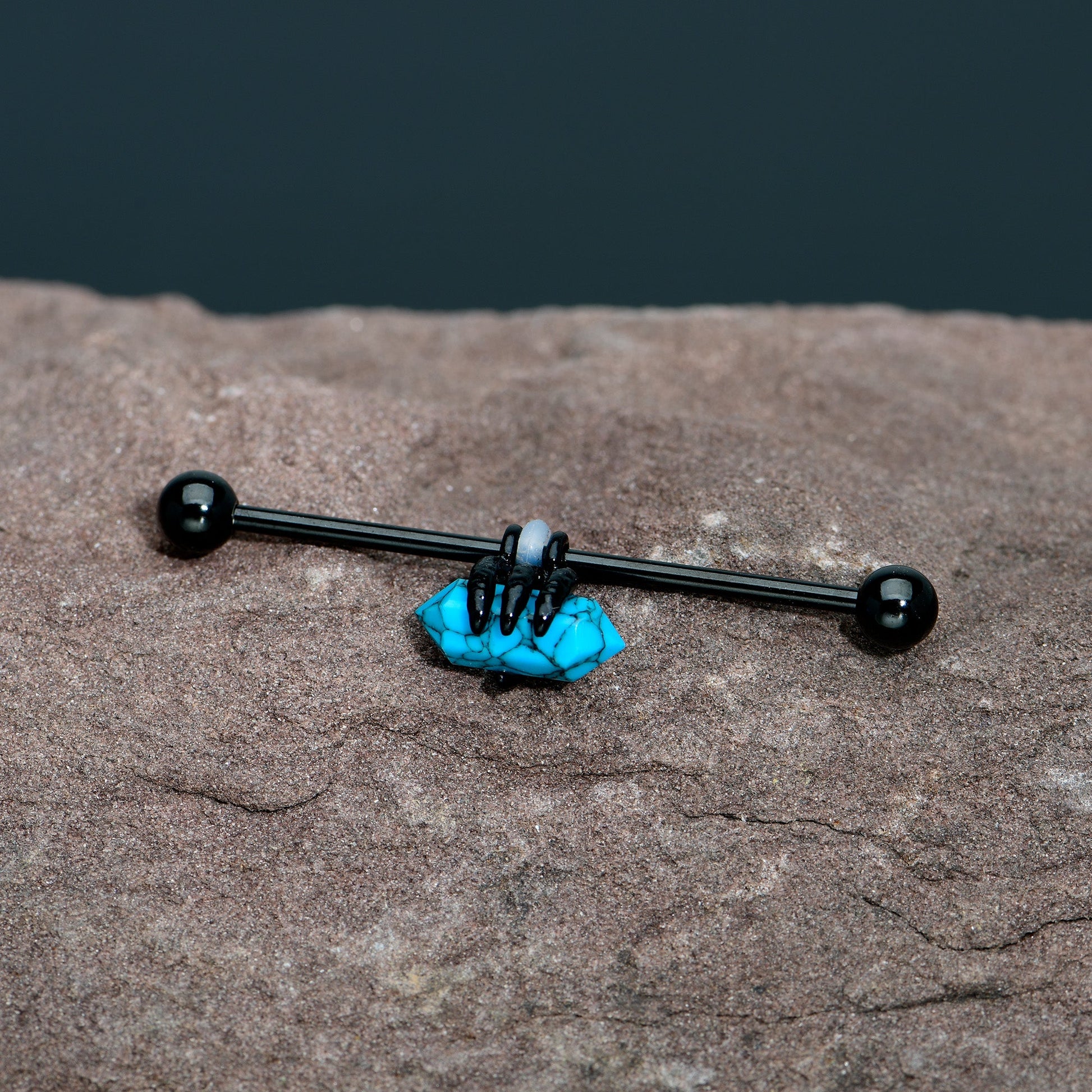 14 Gauge Blue Turquoise Black Claw Industrial Barbell 38mm