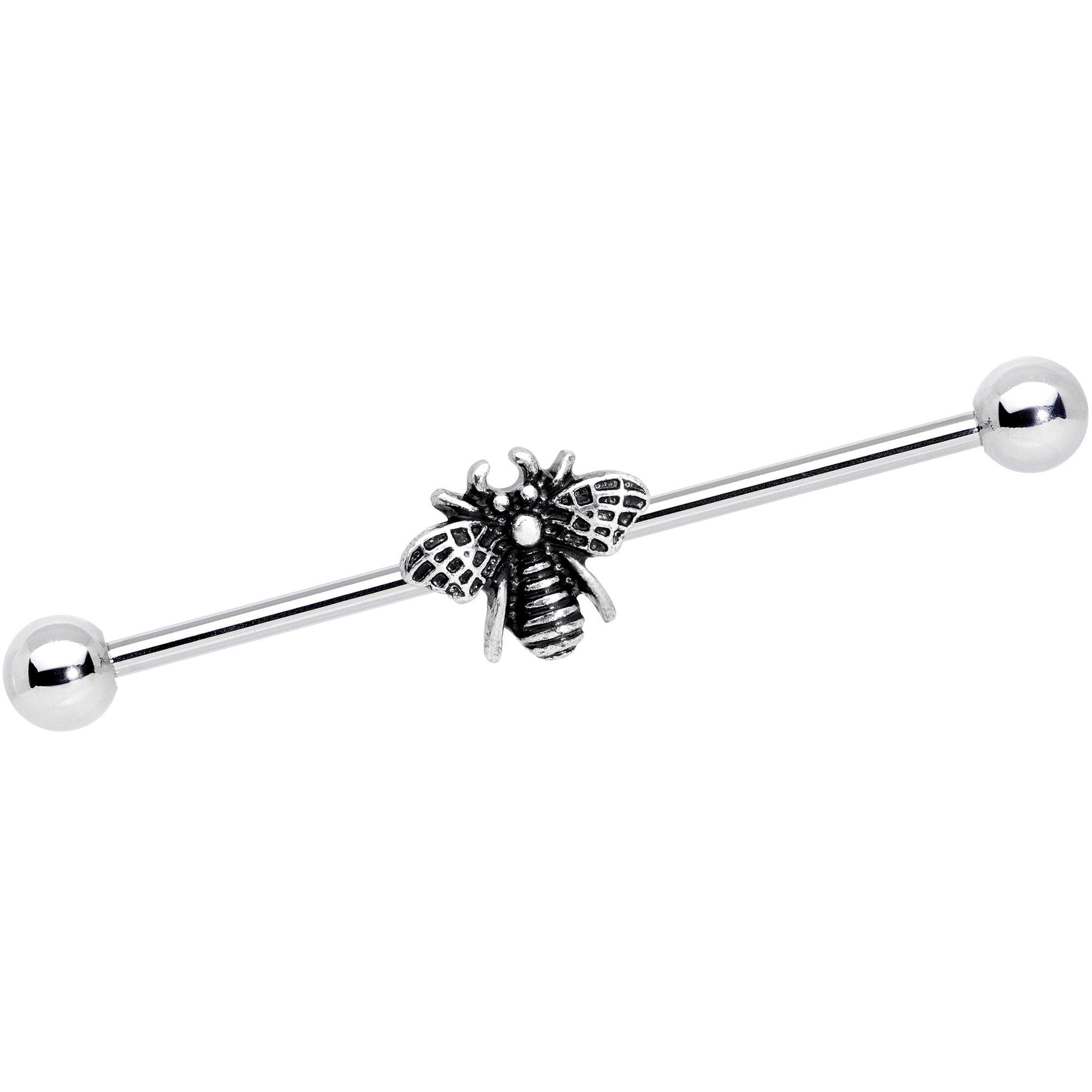 This charming little bee has found the perfect flower to pollinate and it's ready to come in for a landing! This 14 gauge industrial earring is made with a 1 1/2" durable 316L surgical grade stainless steel straight barbell and features a moveable bee charm! This industrial earring will have you swarmed with compliments!Specifications