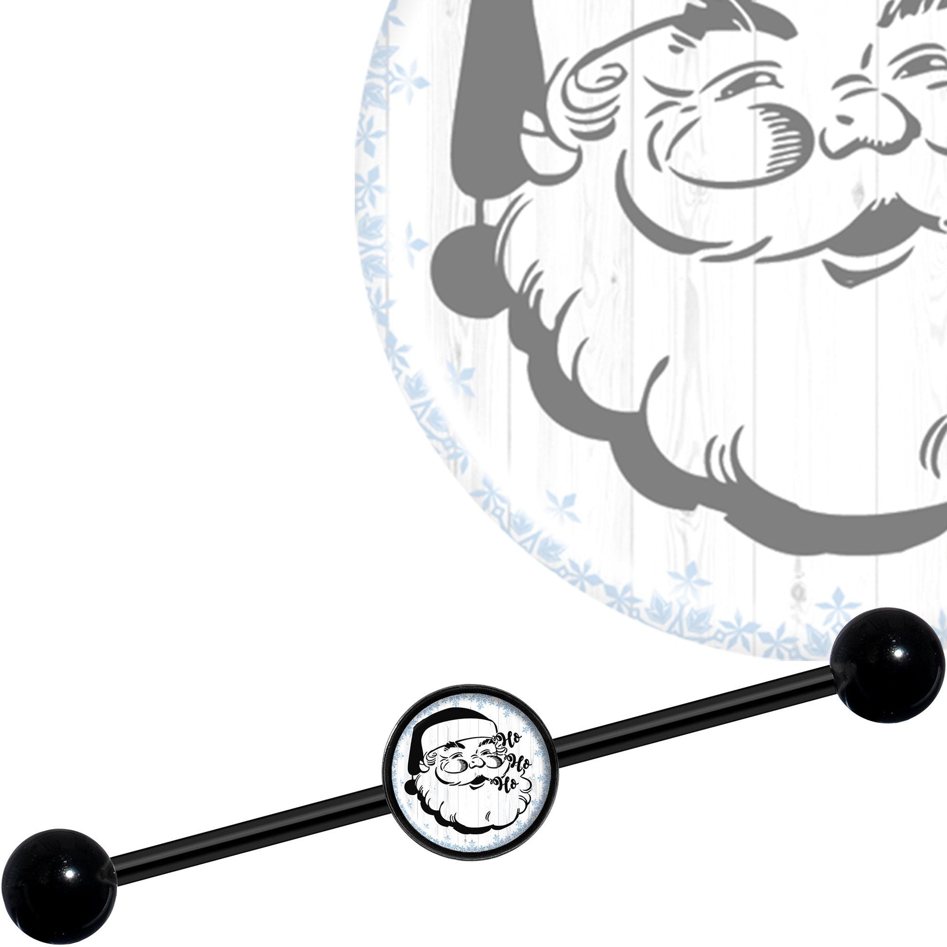14G Christmas Retro Santa Ho Ho Ho Black Industrial Barbell 37mm