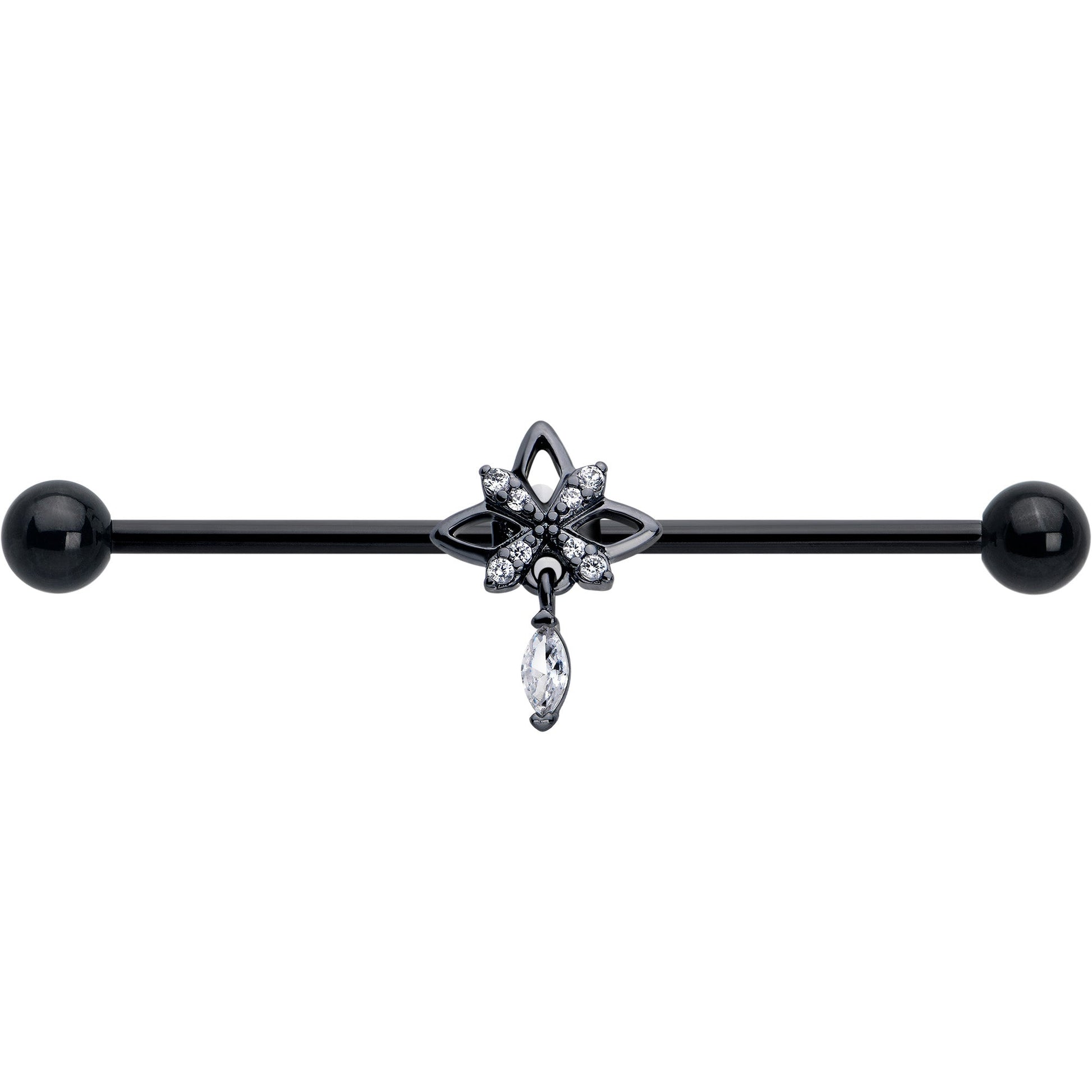 14G Clear CZ Gem Black Gothic Star Dangle Industrial Barbell 38mm