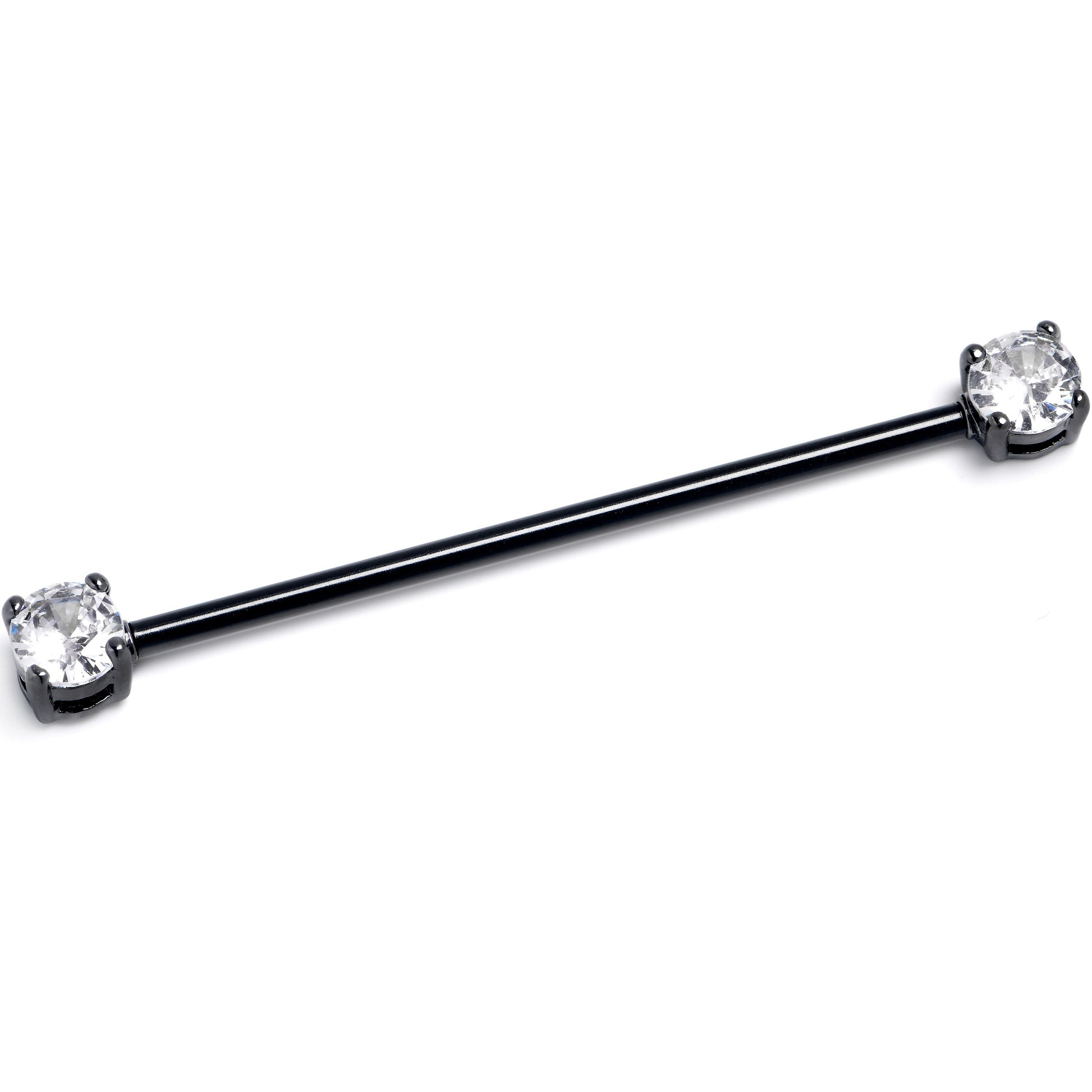 14 Gauge Clear CZ Gem Black Internally Threaded Industrial Barbell 38mm