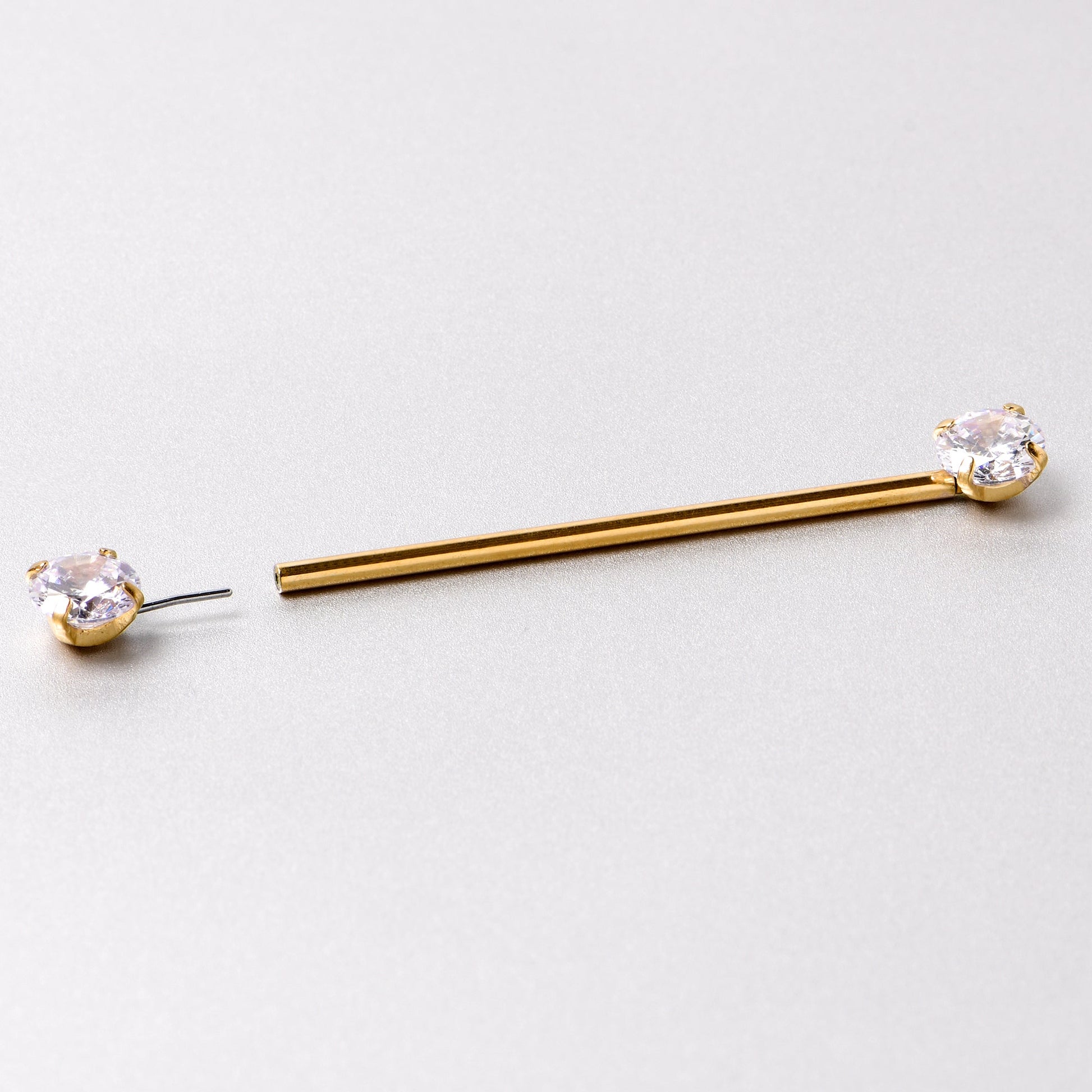 14 Gauge Clear CZ Gem Gold Tone Threadless Industrial Barbell 38mm