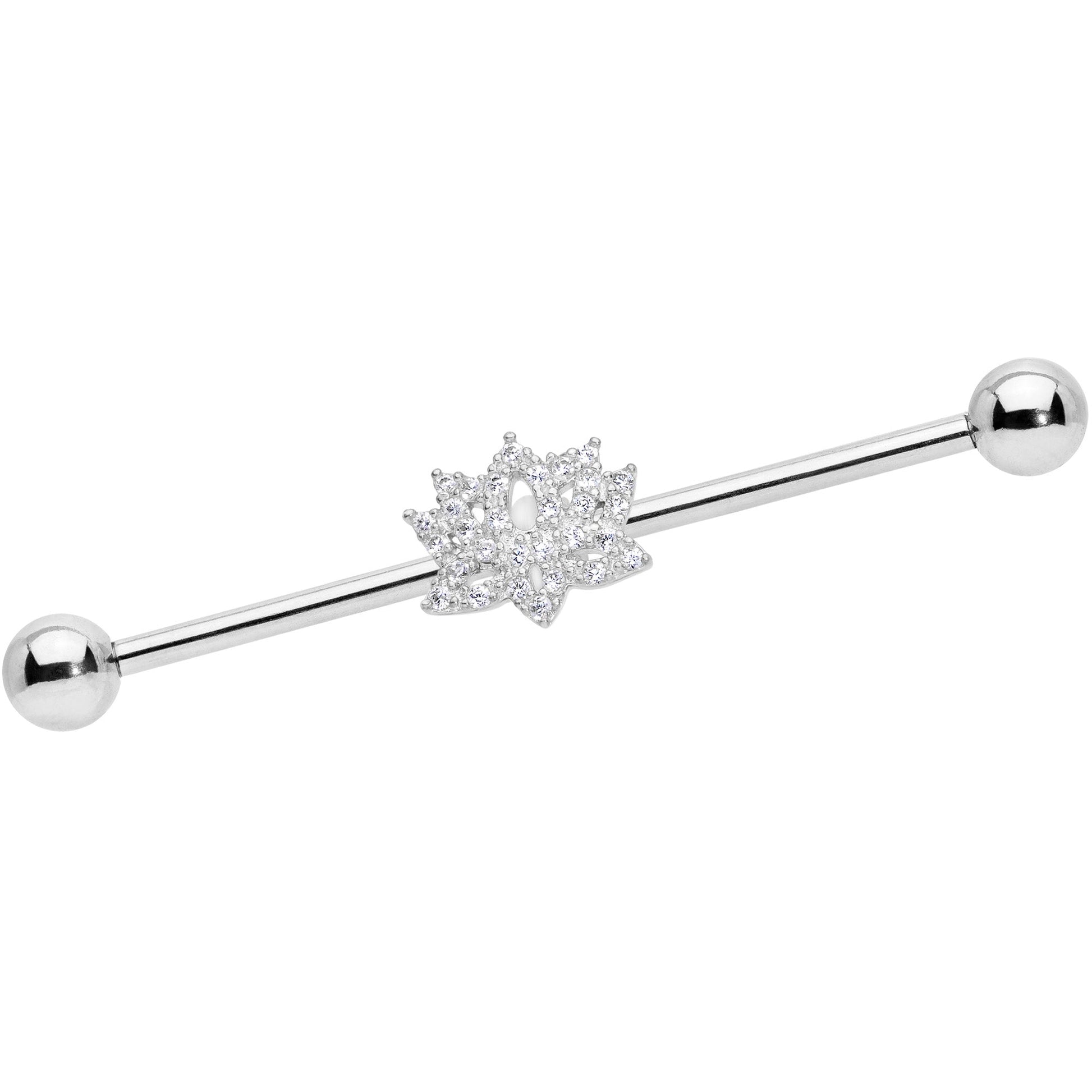 14 Gauge Clear CZ Gem Lotus Flower Industrial Barbell 38mm