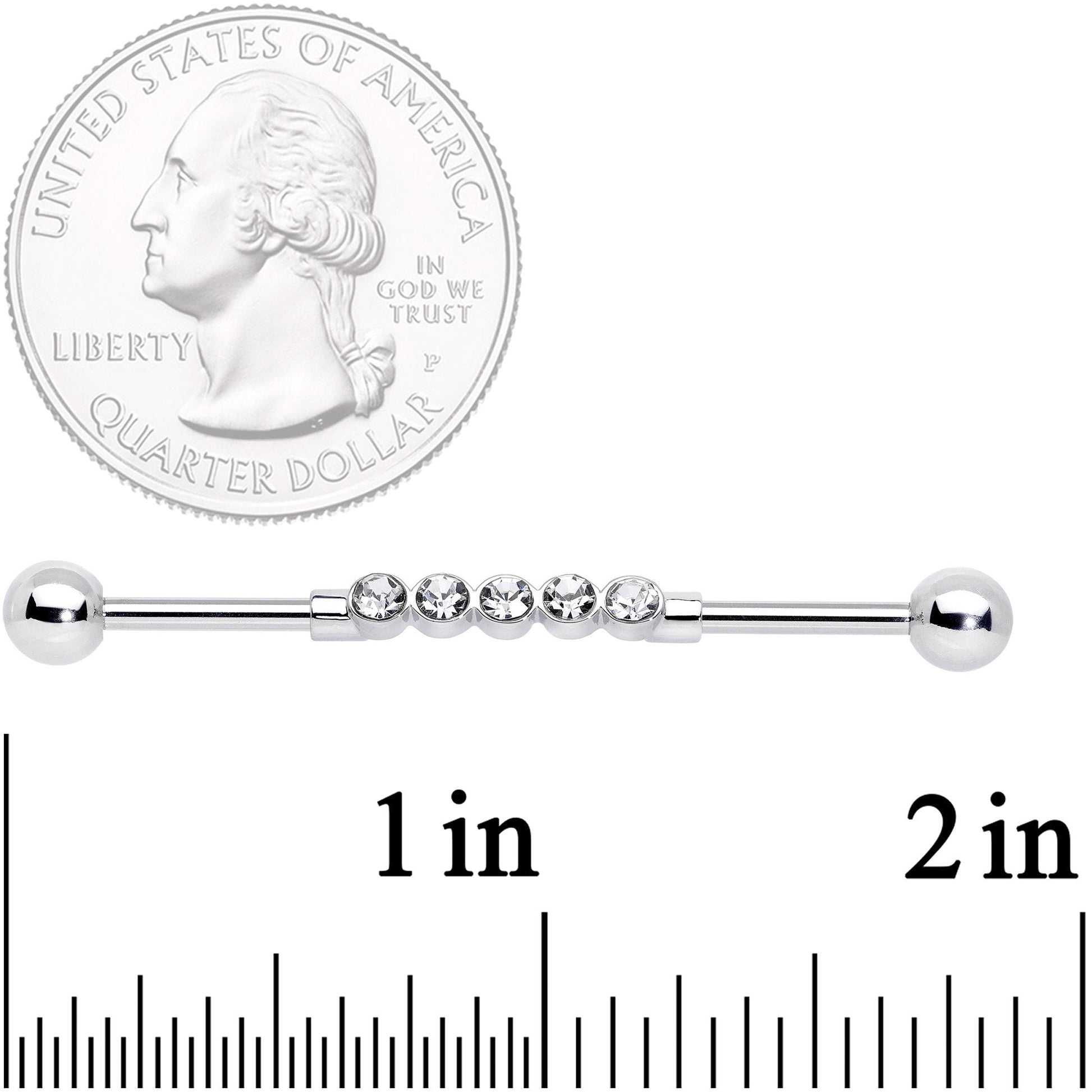 14G Clear CZ Gem Quintuplet Industrial Barbell 38mm