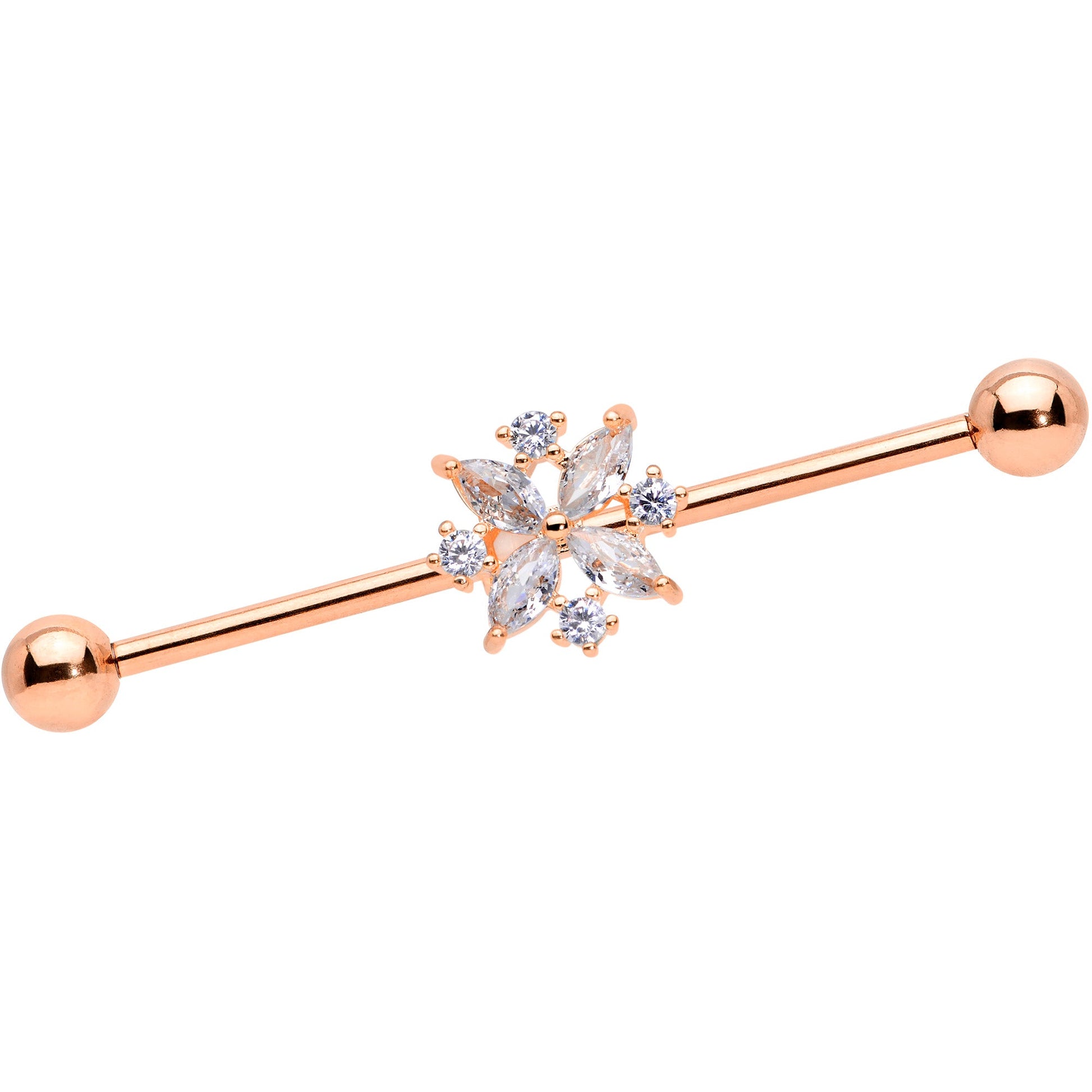 14G Clear CZ Gem Rose Gold Tone Star Burst Industrial Barbell 38mm