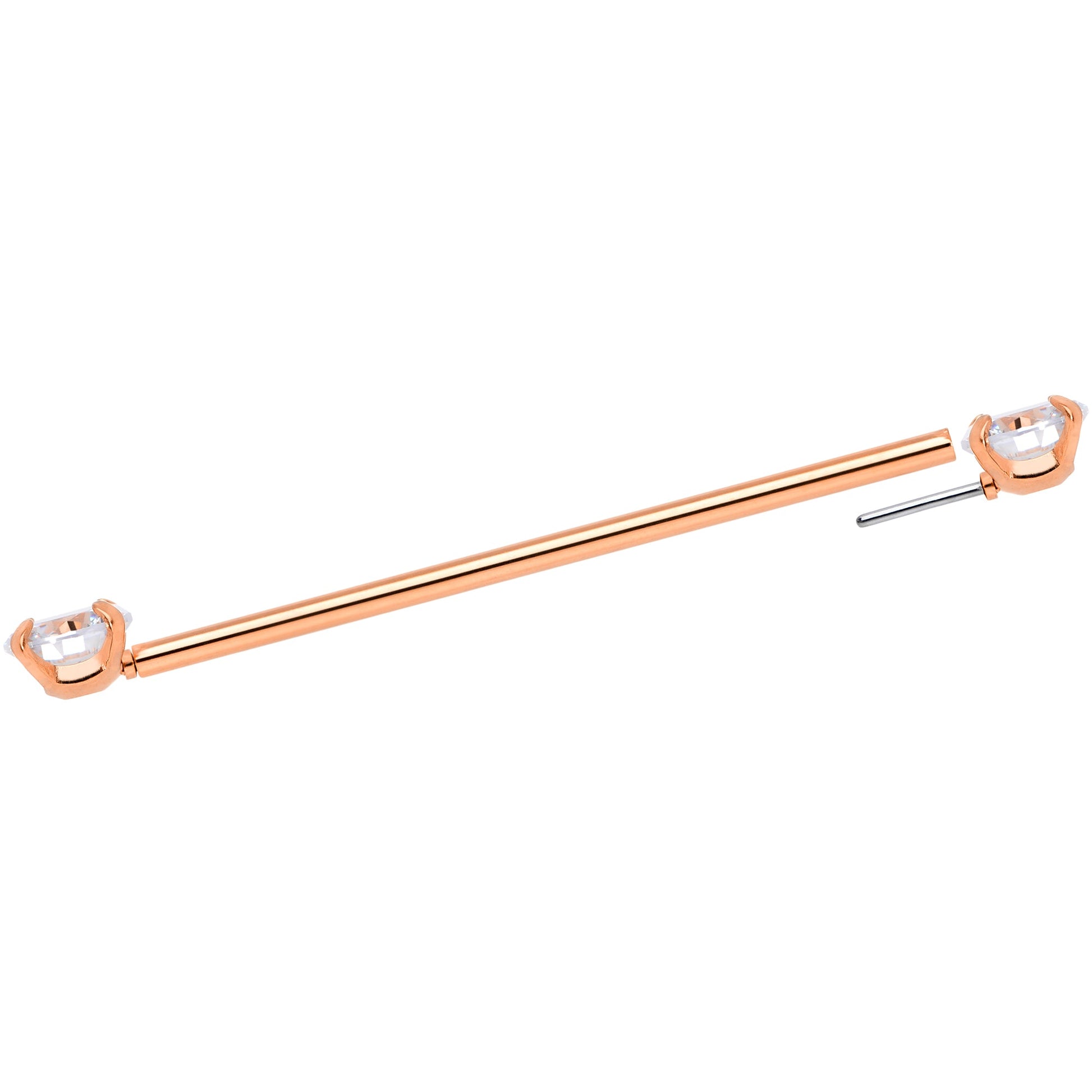 14 Gauge Clear CZ Gem Rose Gold Tone Threadless Industrial Barbell 38mm