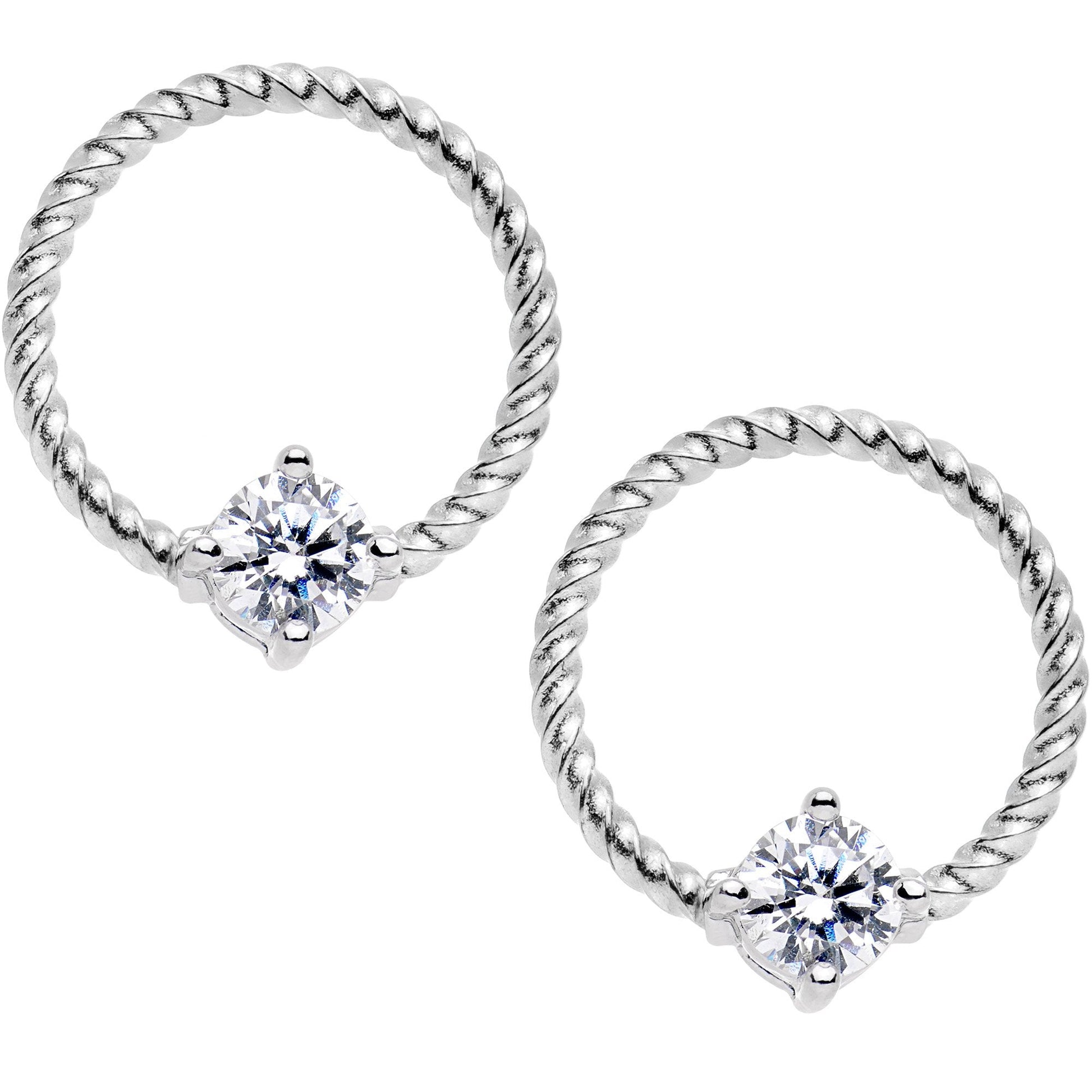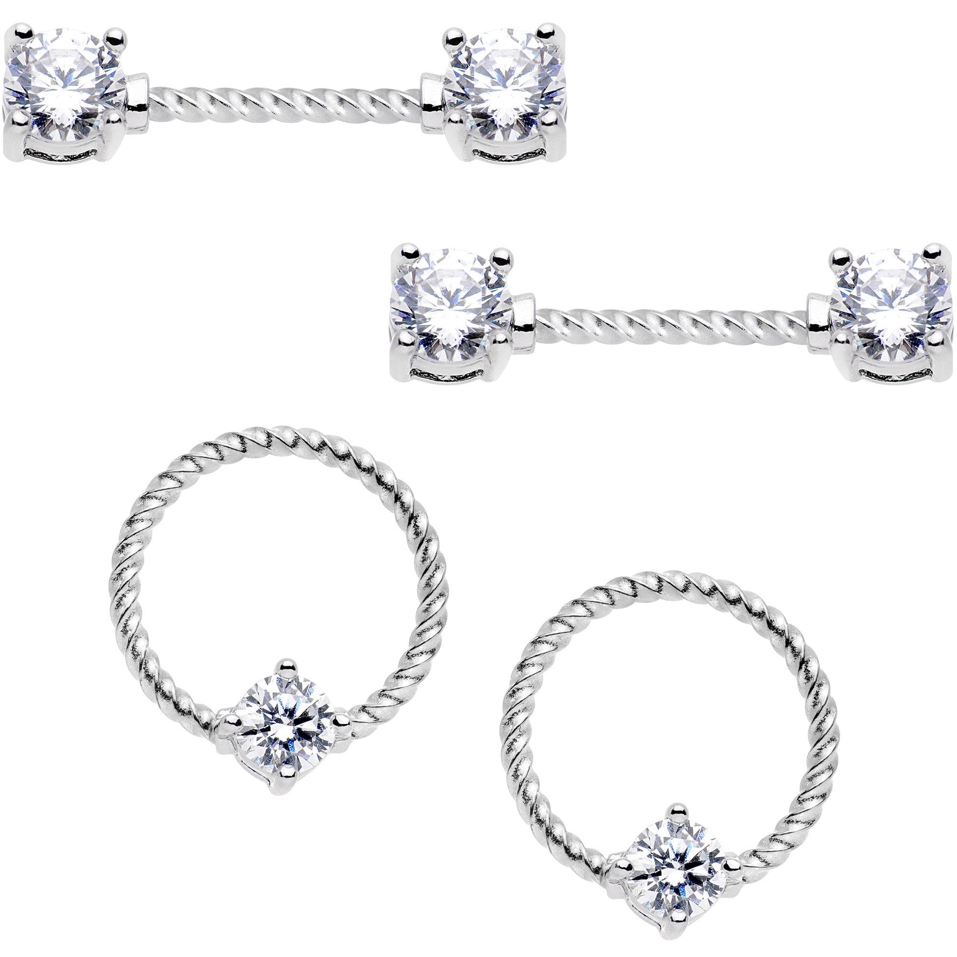 Clear CZ Gem Captive Ring Twisted Straight Barbell Nipple Ring Set