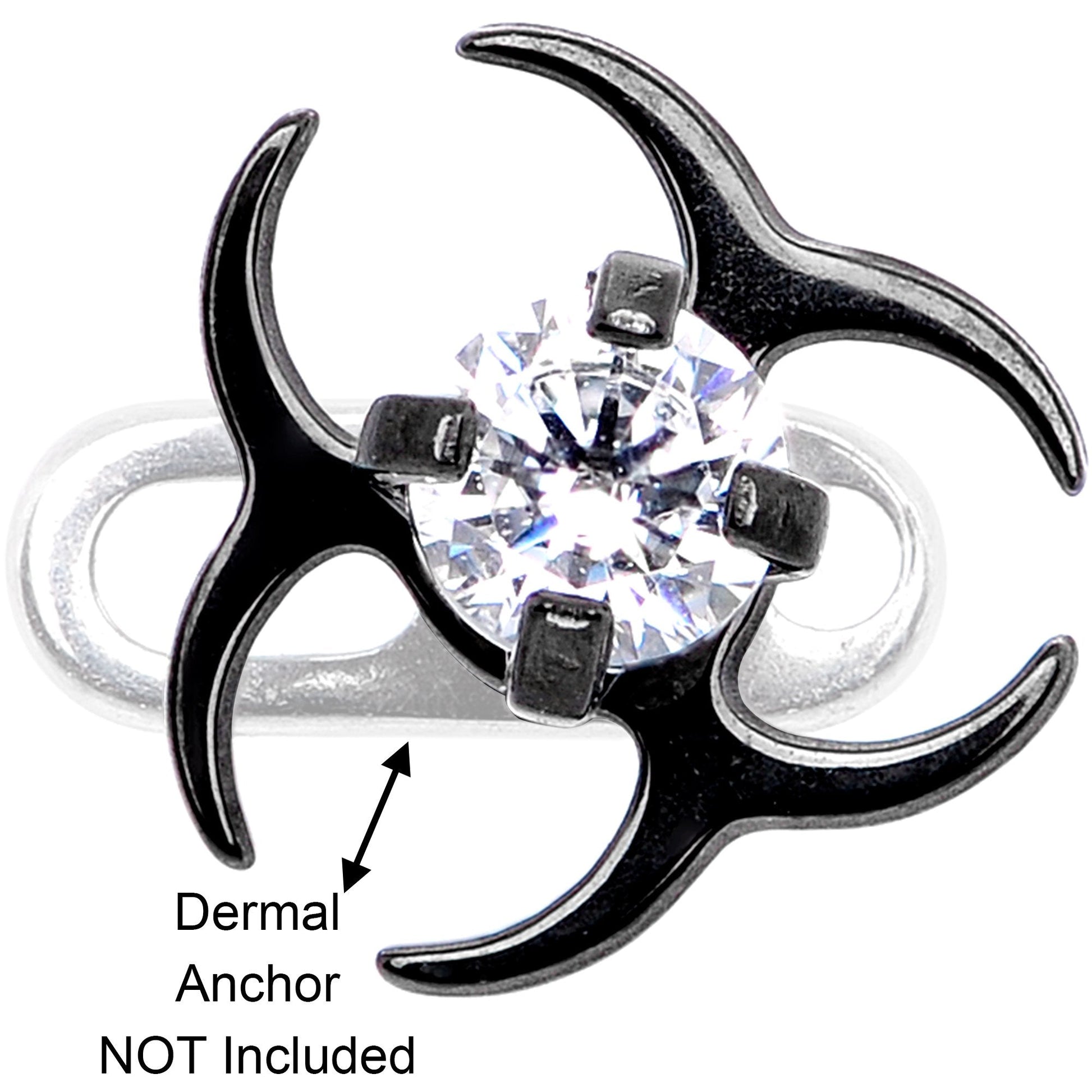 14G Clear Gem Black Biohazard Dermal Anchor Top