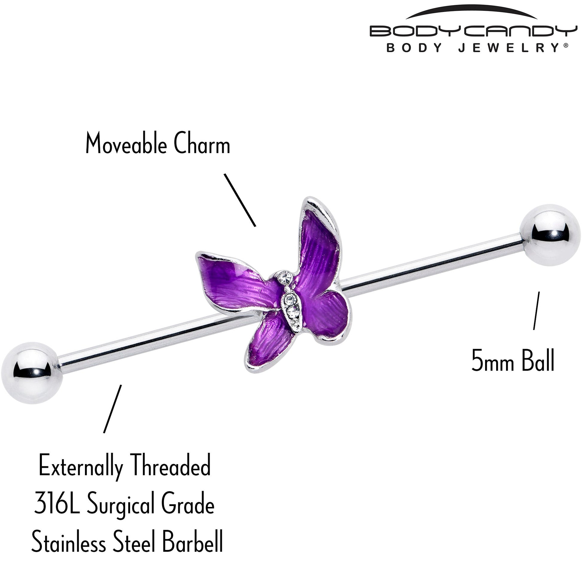 14 Gauge Clear Gem Chunky Butterfly Purple Industrial Barbell 38mm