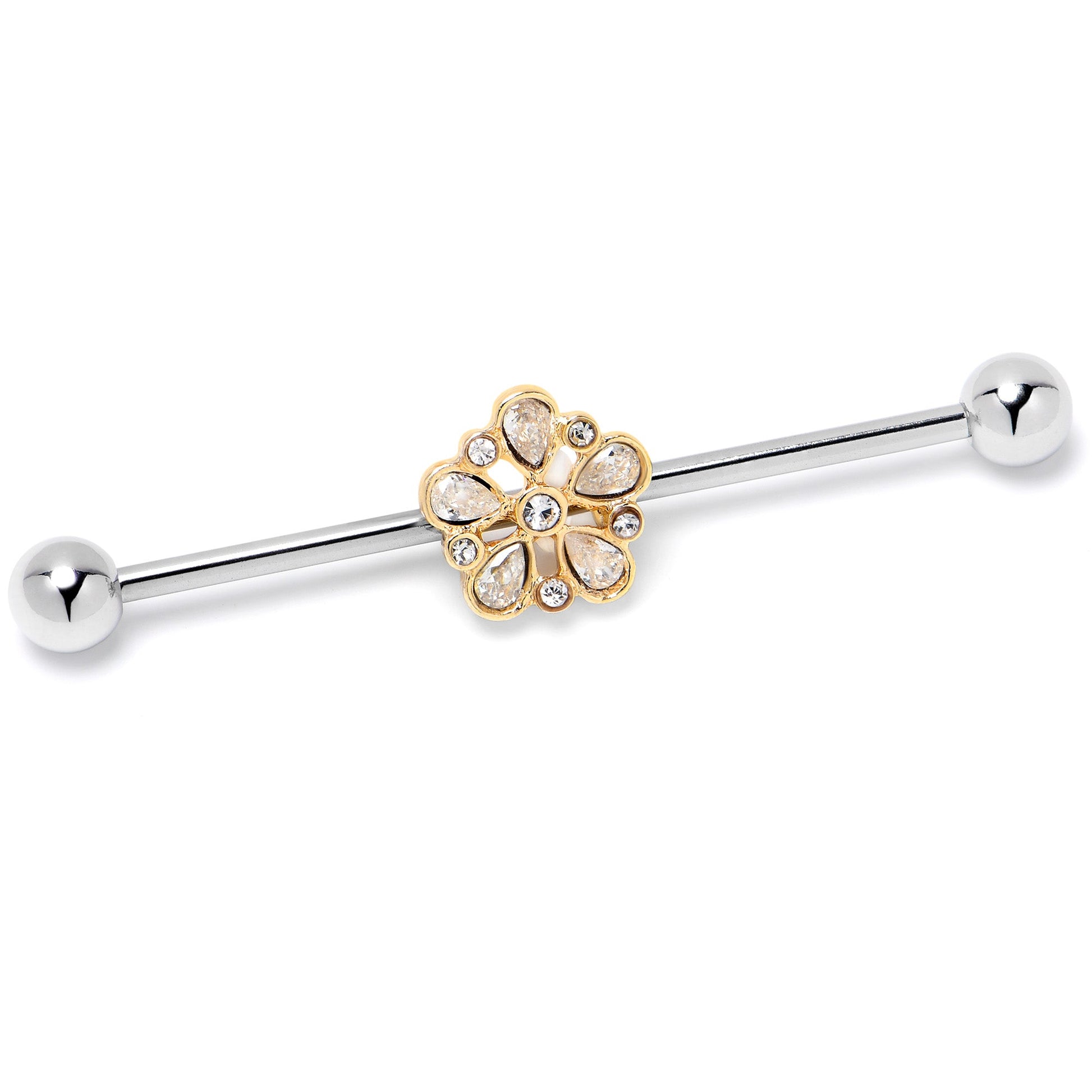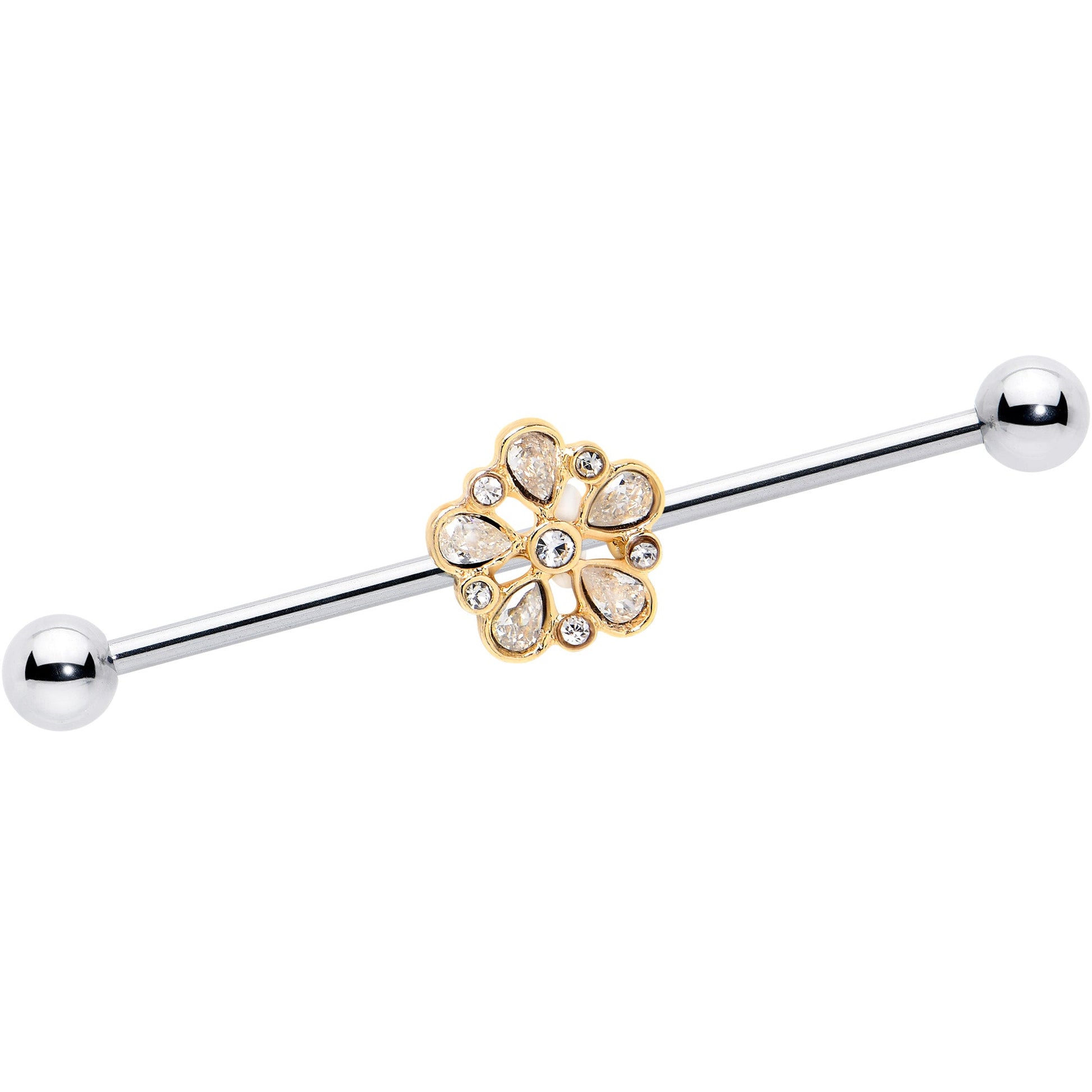 14 Gauge Clear Gem Filigree Flower Fantasy Industrial Barbell 38mm