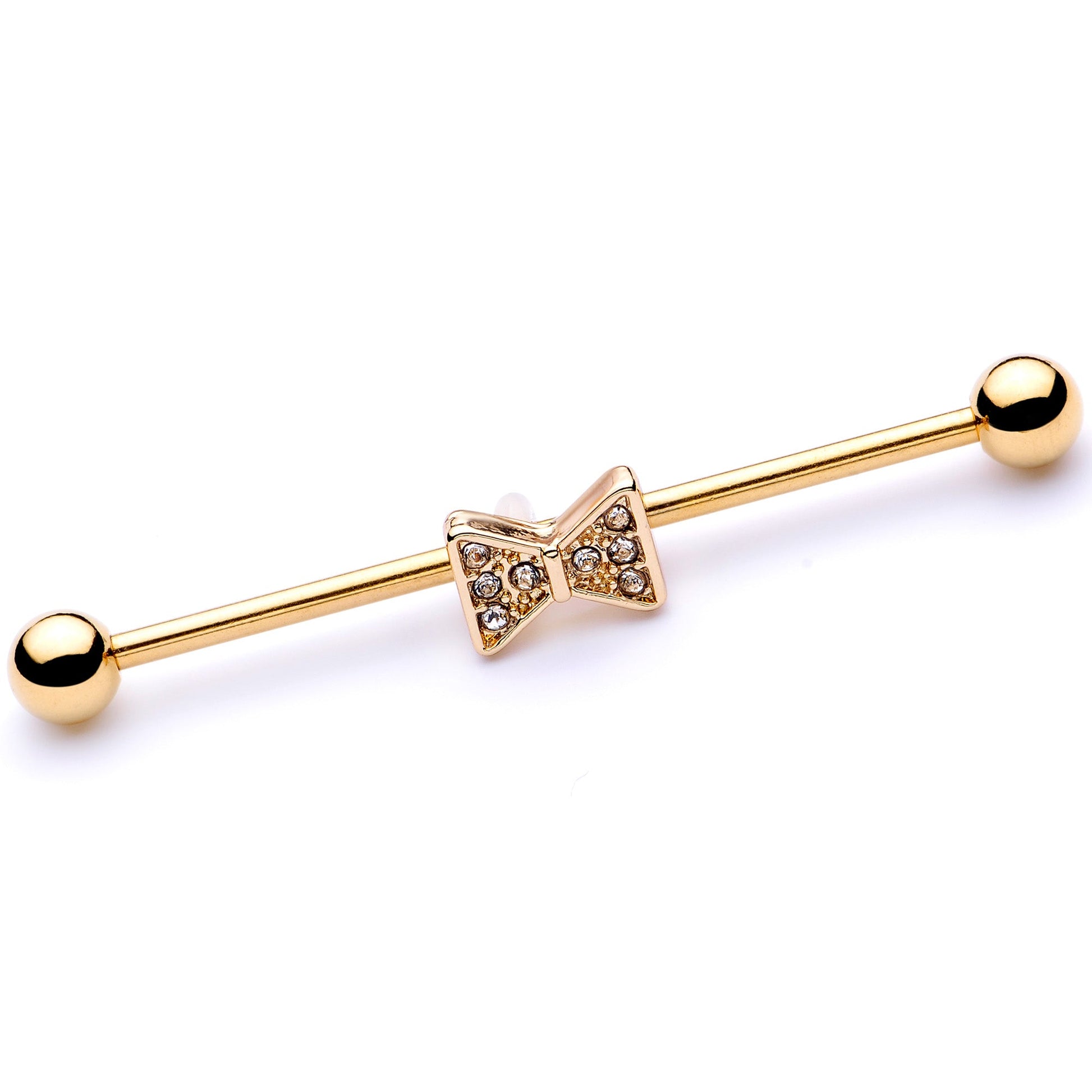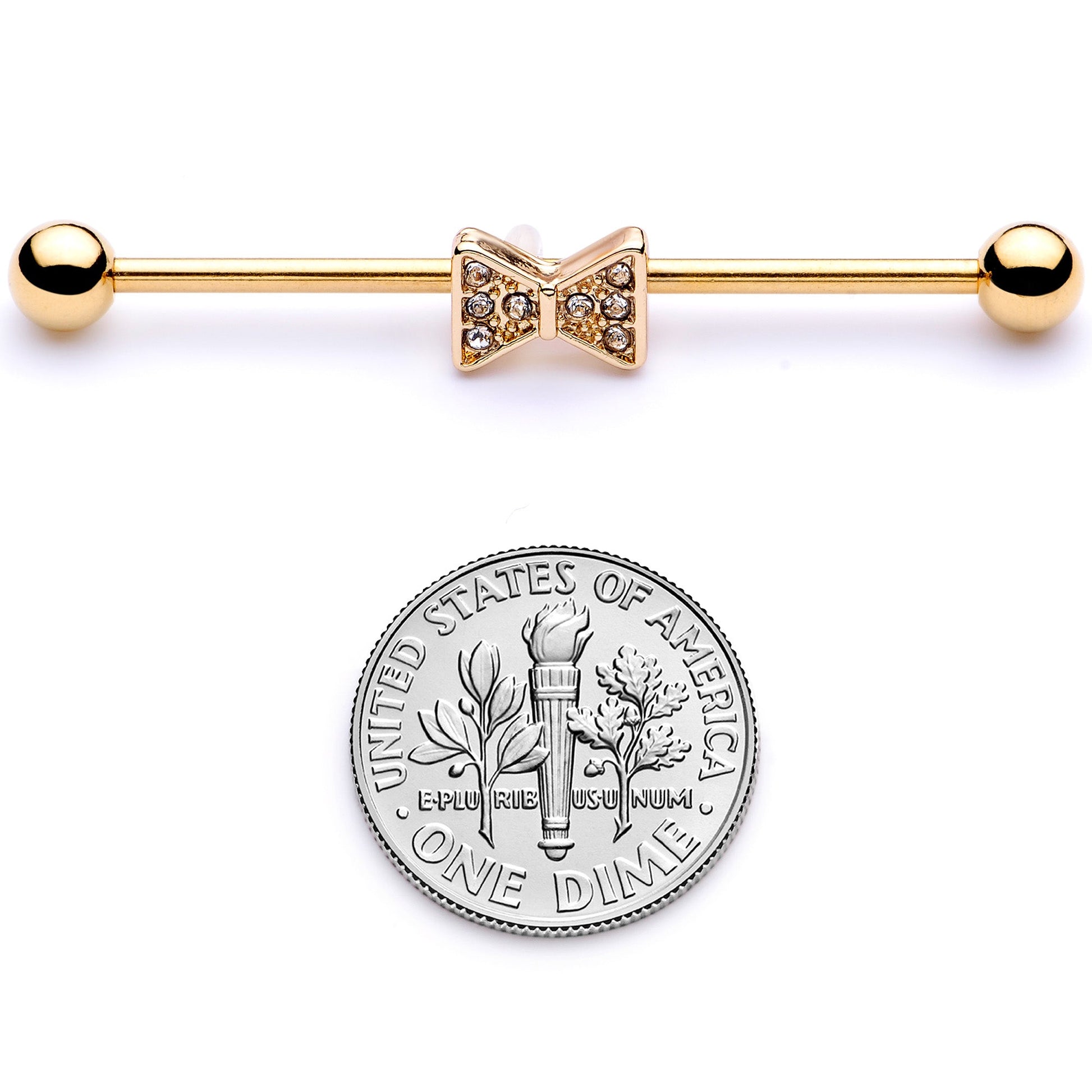 14 Gauge Clear Gem Gold Tone Bow Tie Industrial Barbell 38mm