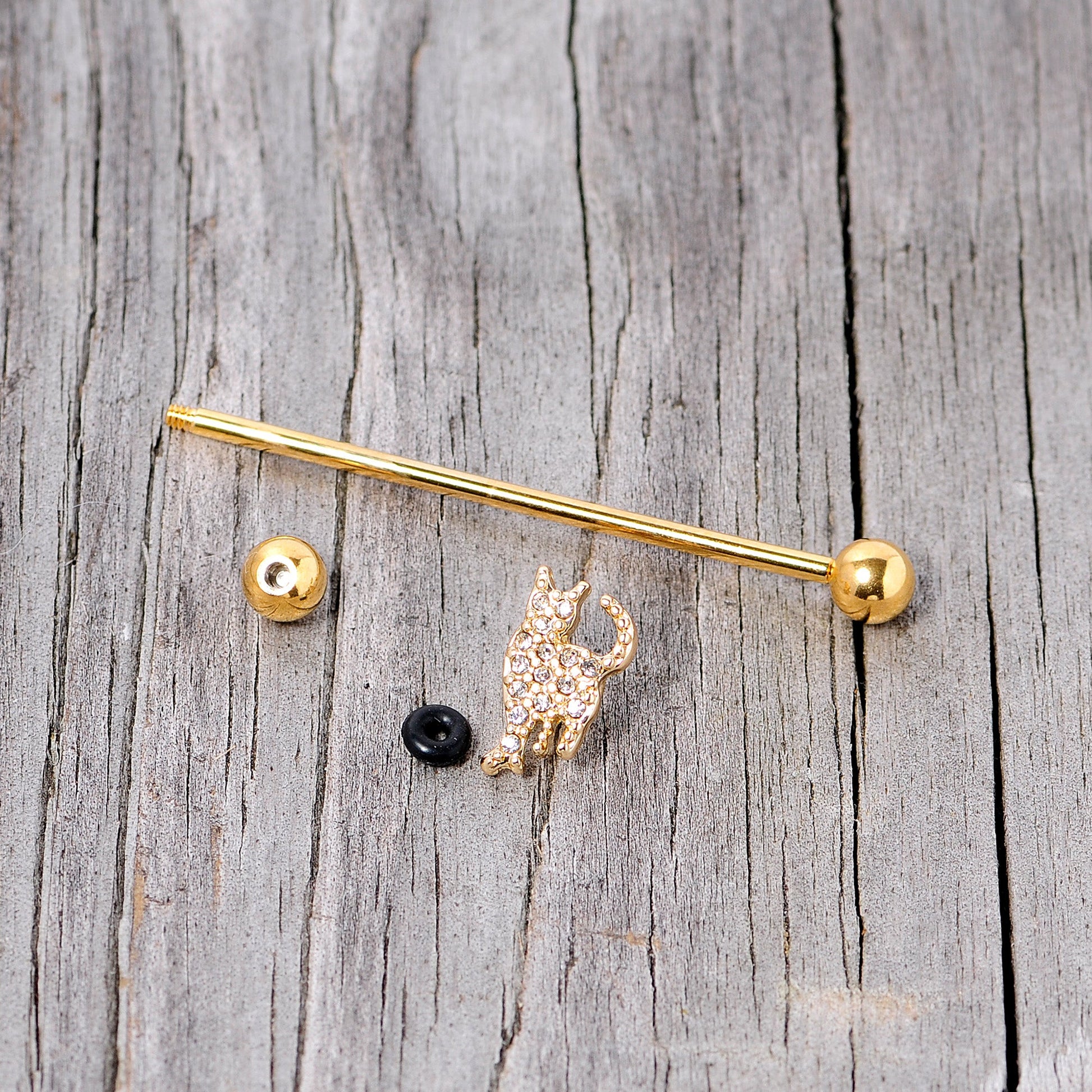 14 Gauge Clear Gem Gold Tone Glamourpuss Cat Industrial Barbell 38mm