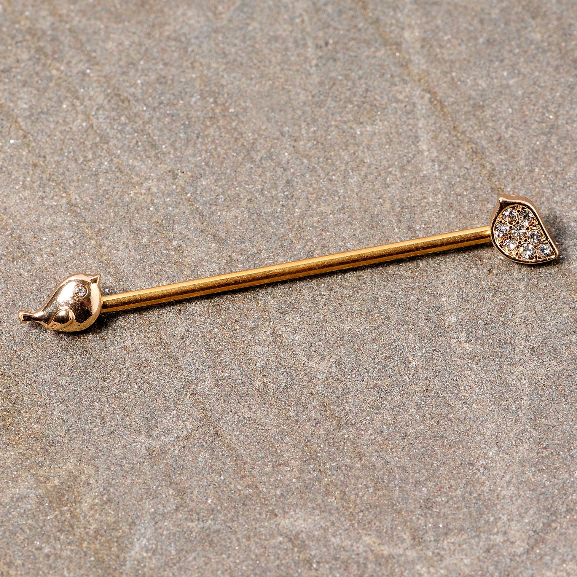 14G Clear Gem Gold Tone Little Birds Industrial Barbell 38mm