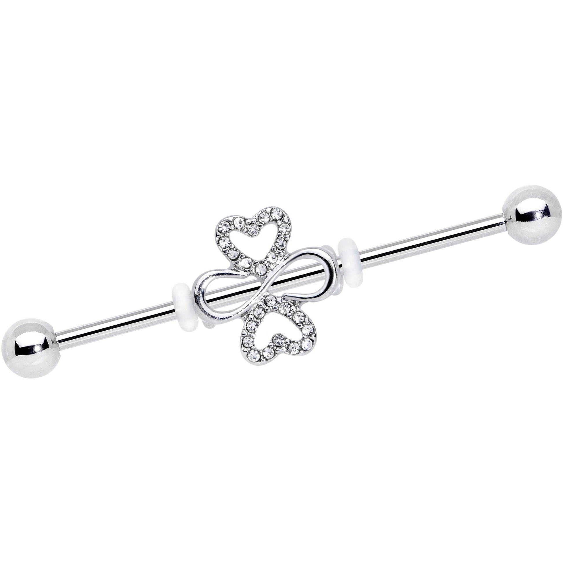 14 Gauge Clear Gem Heart Shamrock St Patricks Industrial Barbell 38mm