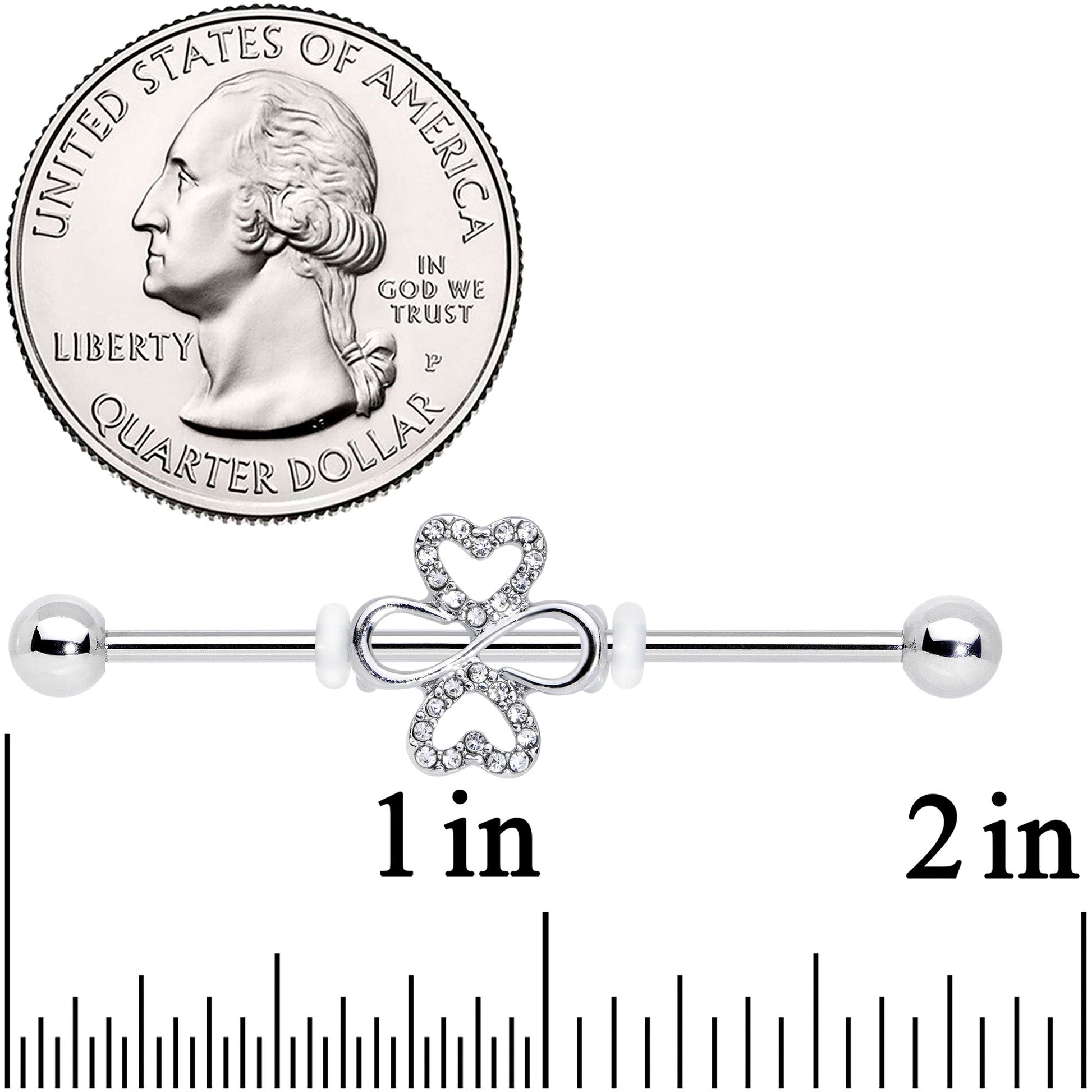 14G Clear Gem Heart Shamrock St Patricks Industrial Barbell 38mm