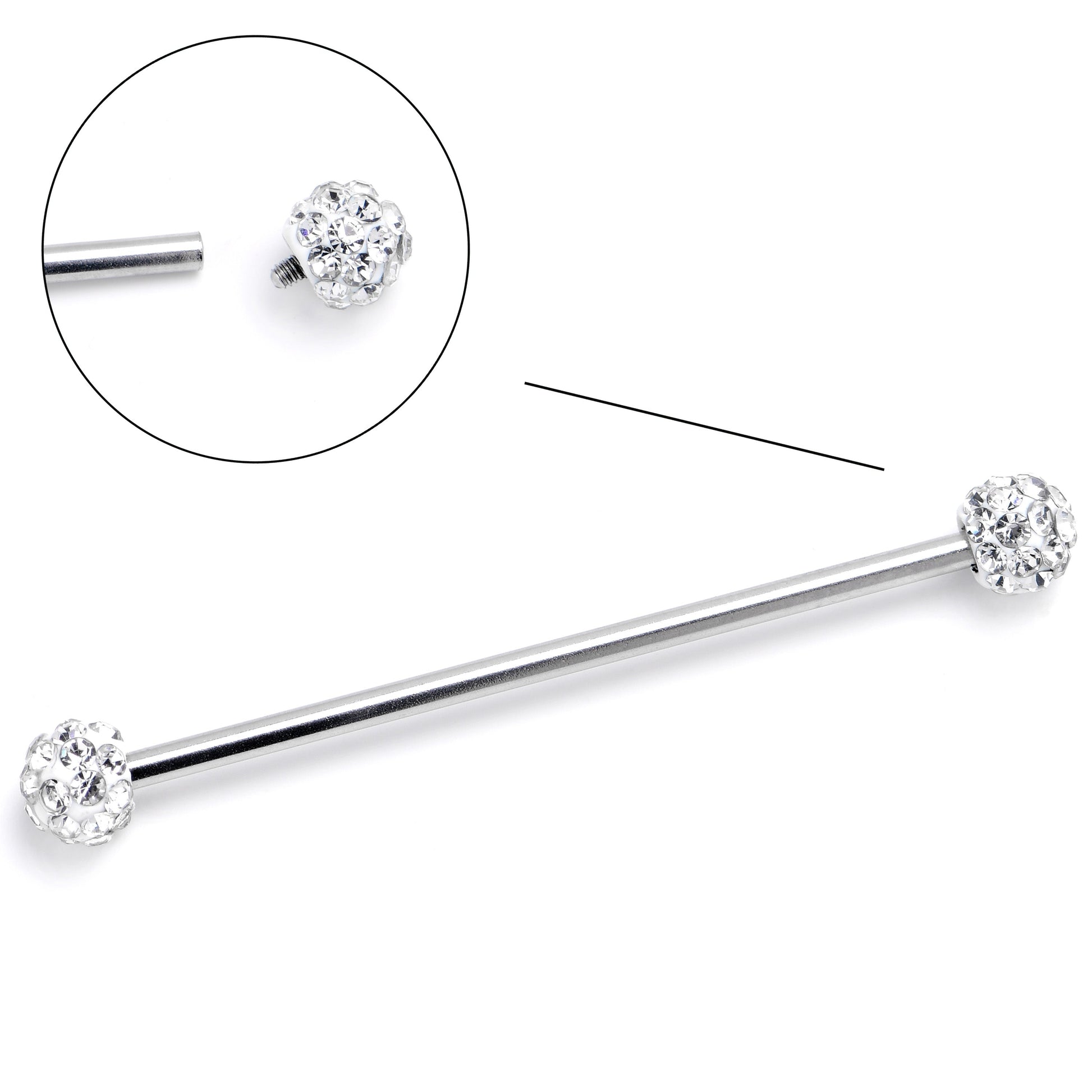 Get some style that all can see with this 14 gauge helix barbell. It is made with a 1 1/2 inch 316L surgical grade stainless steel straight barbell. It features 5mm ball ends that are paved with clear gems for a look reminiscent of a disco ball and they are internally threaded for maximum comfort on insertion and removal. Make everyone stand up and take notice of your classic new look with this stylish and simple barbell earring.Specifications