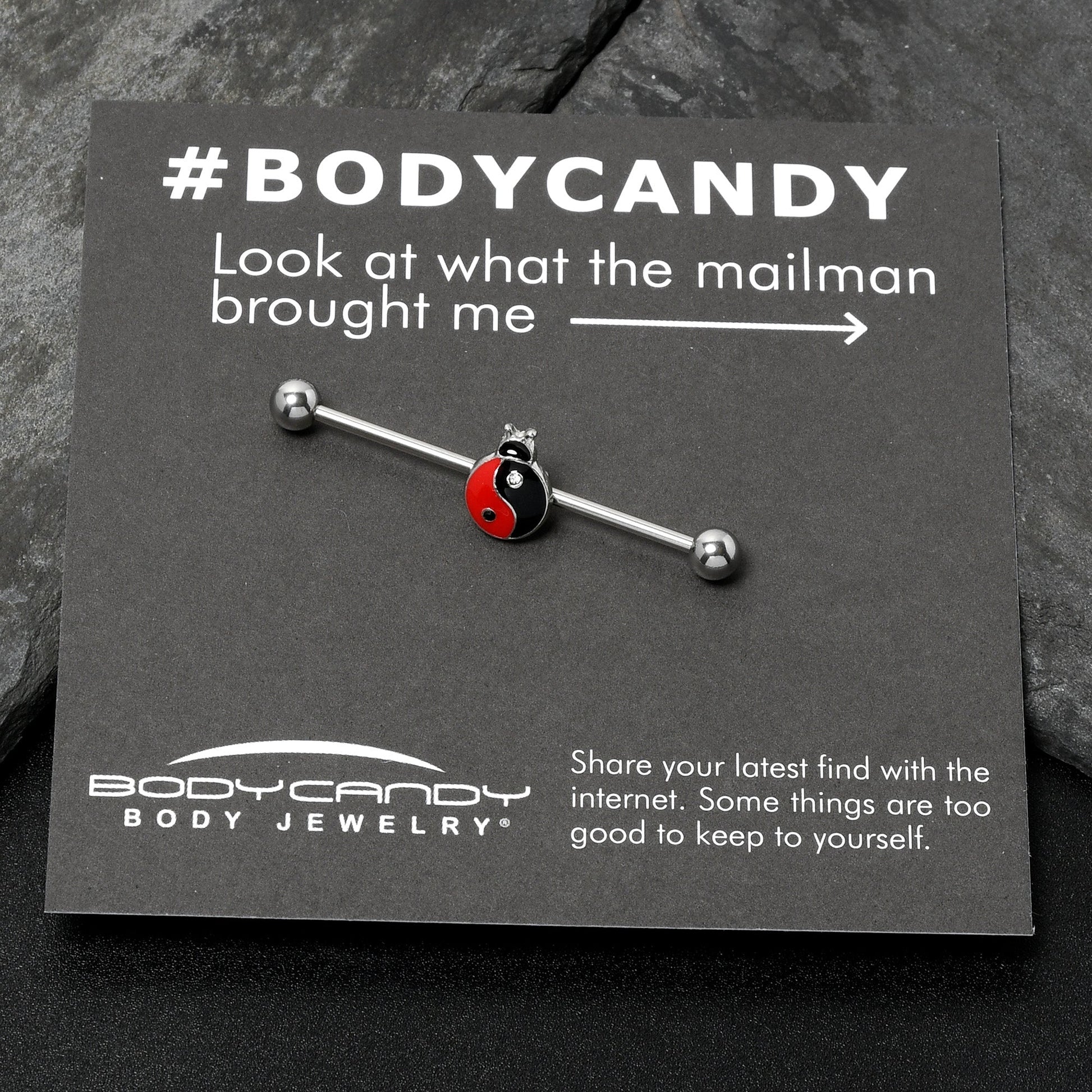 14 Gauge Clear Gem Ladybug Yin Yang Industrial Barbell 38mm