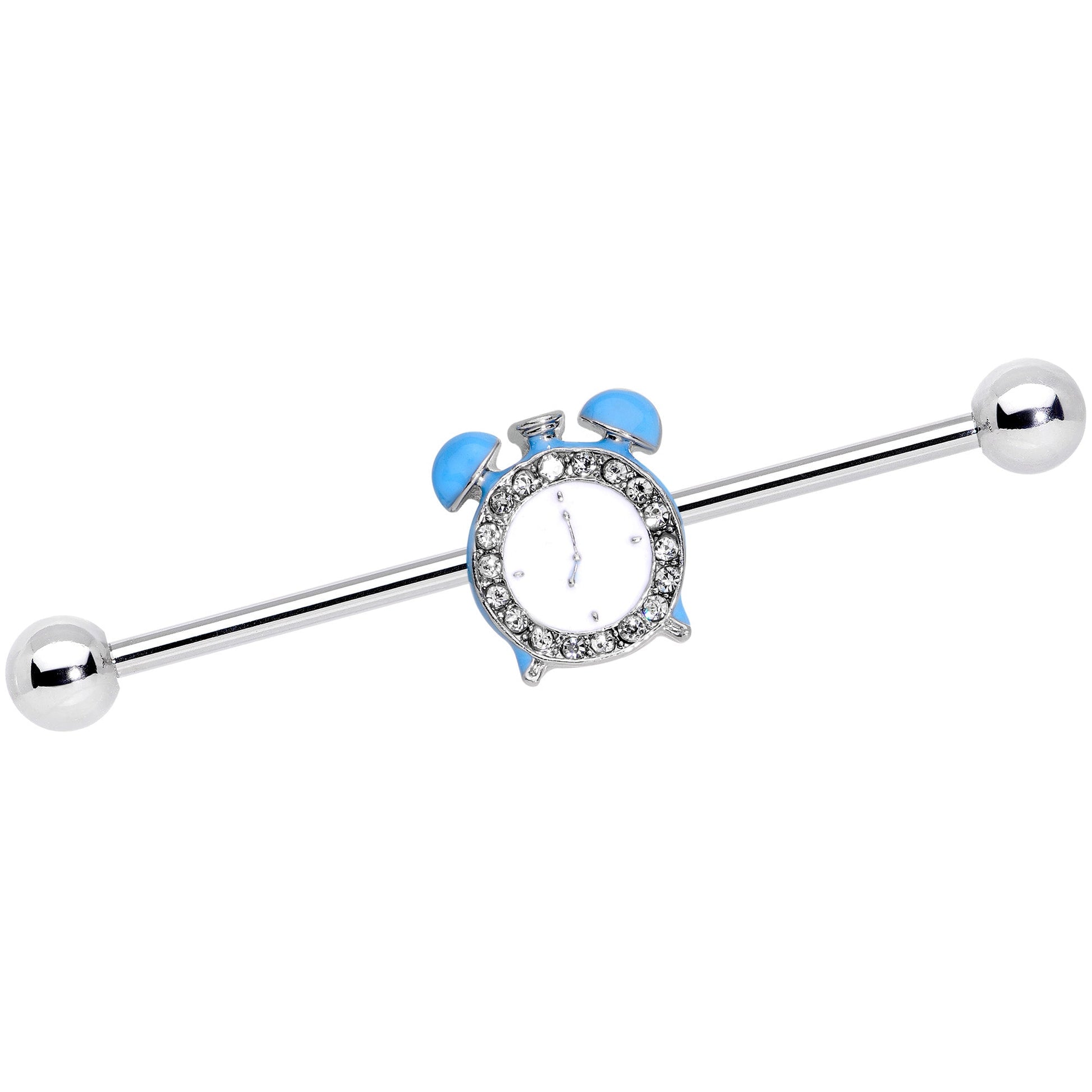 14G Clear Gem Light Blue Alarm Clock Industrial Barbell 38mm