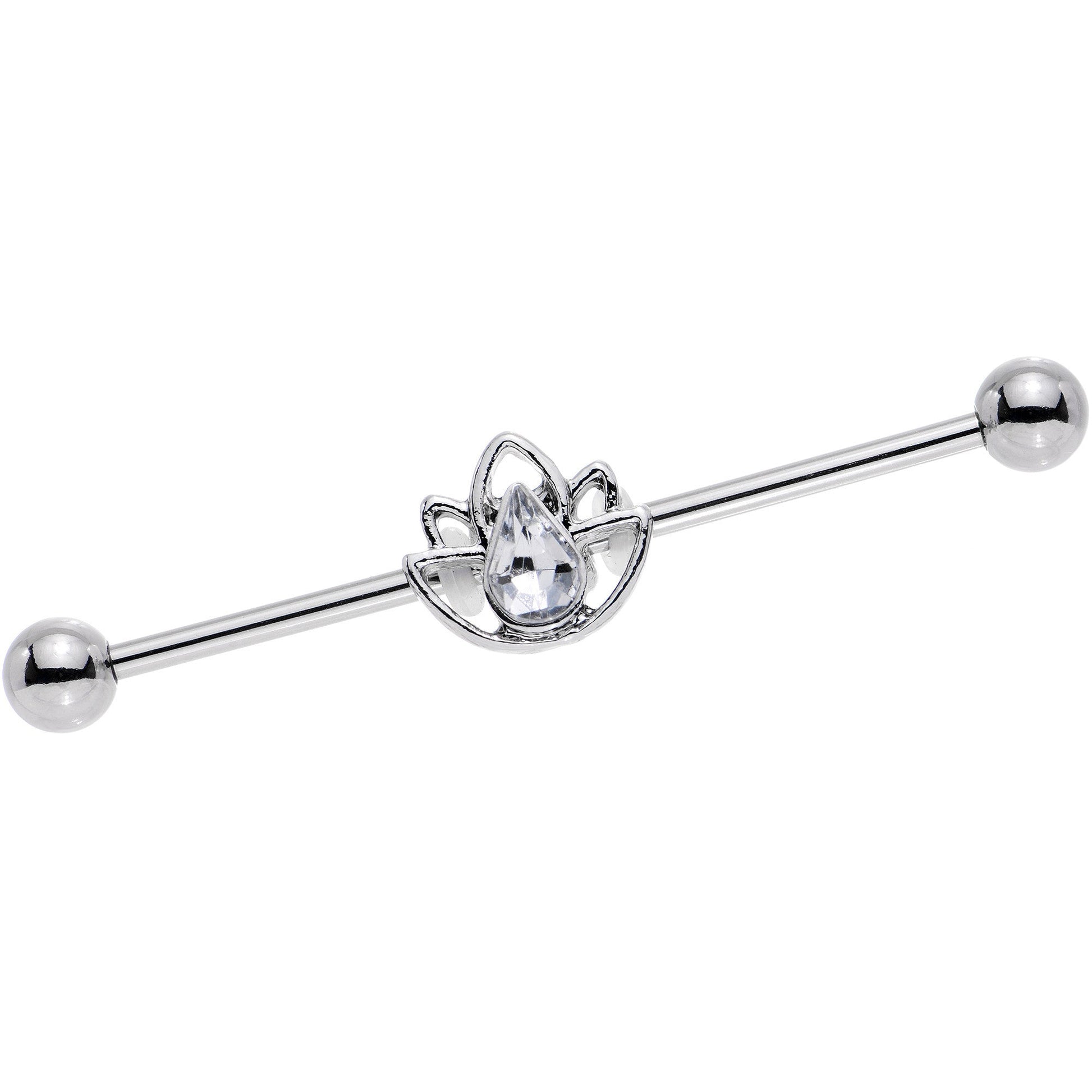 14 Gauge Clear Gem Lonely Lotus Flower Industrial Barbell 38mm