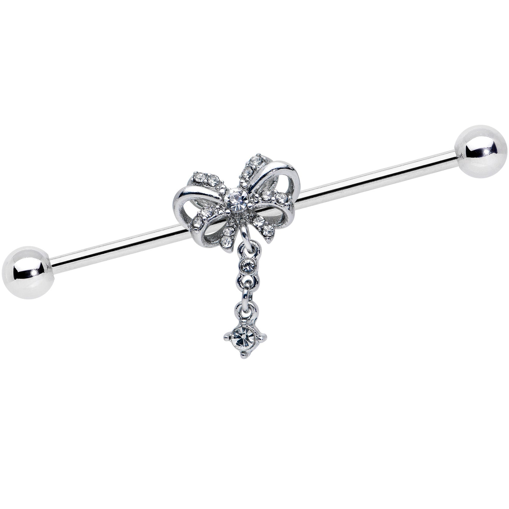 14 Gauge Clear Gem Looping Bow Dangle Industrial Barbell 38mm