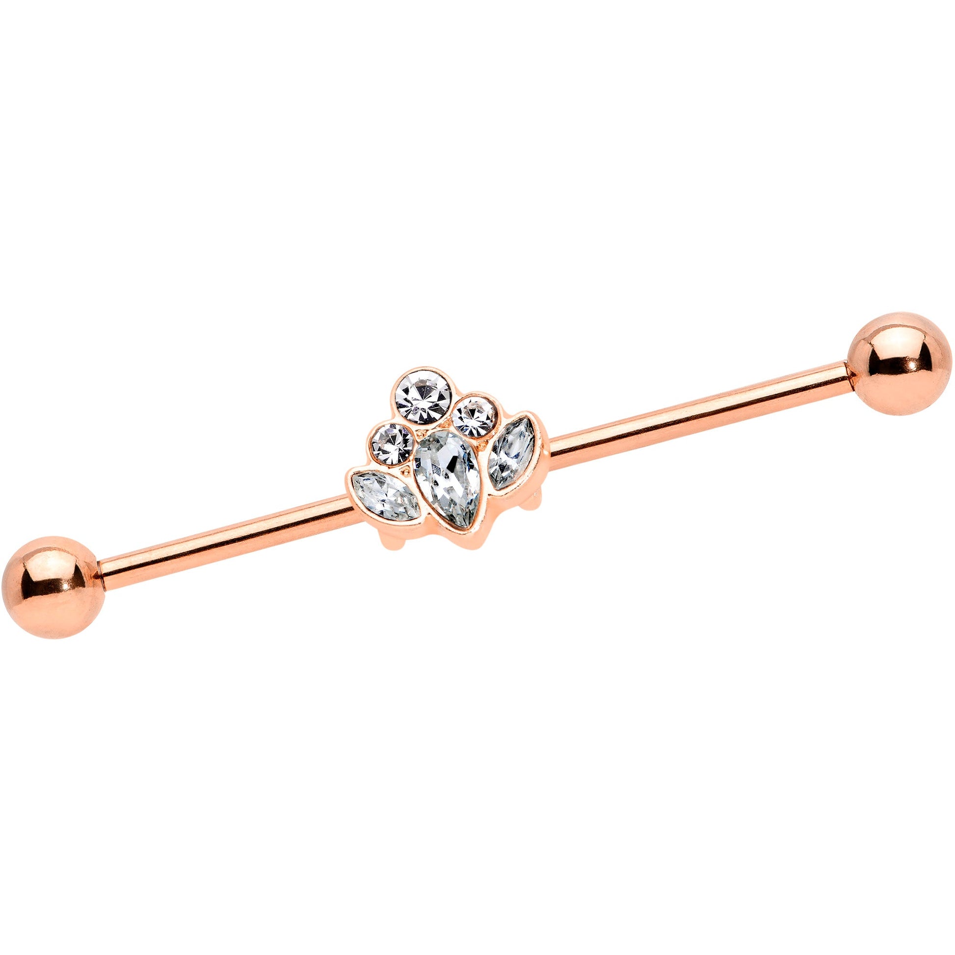 14 Gauge Clear Gem Rose Gold Hue Anodized Cluster Industrial Barbell 38mm