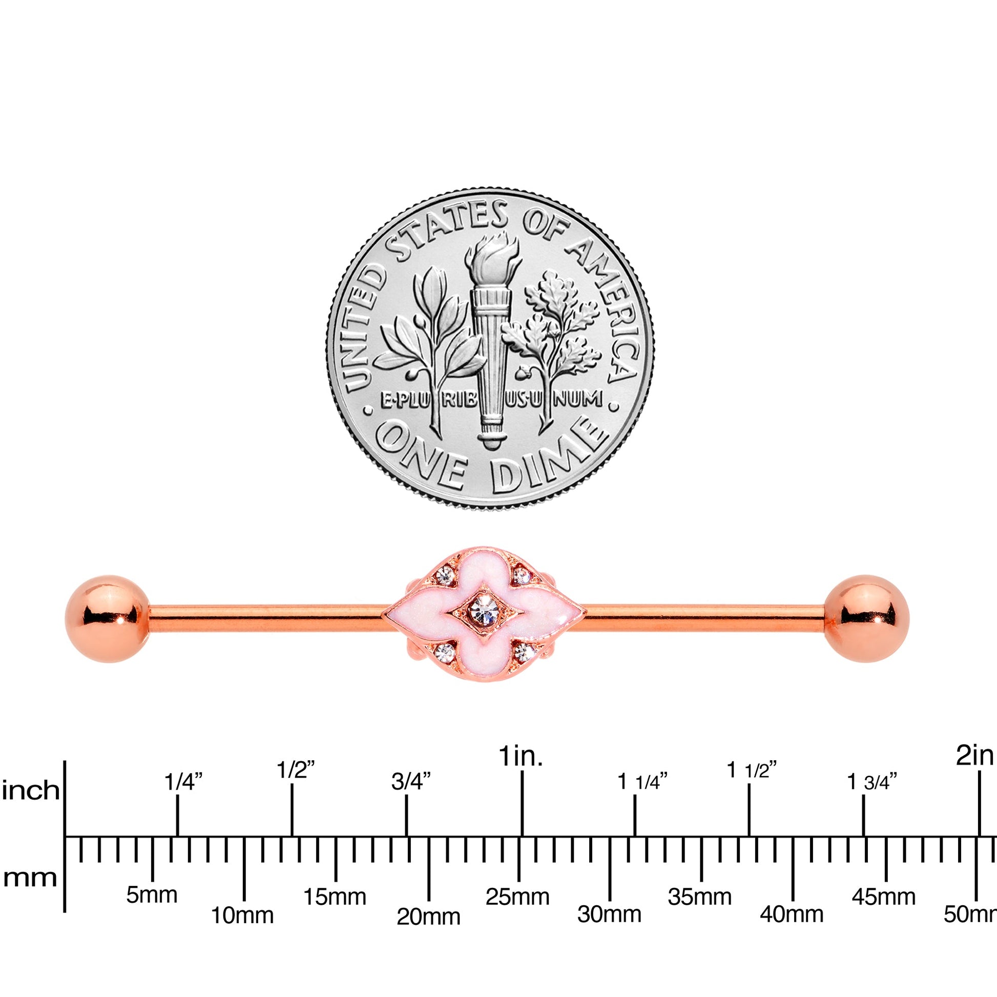 14 Gauge Clear Gem Rose Gold Tone Pink Cross Industrial Barbell 38mm