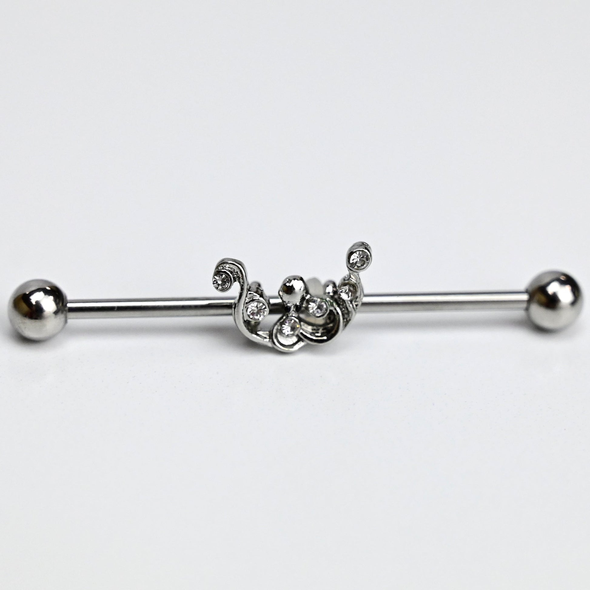 14 Gauge Clear Gem Scrolling Elegance Industrial Barbell 38mm