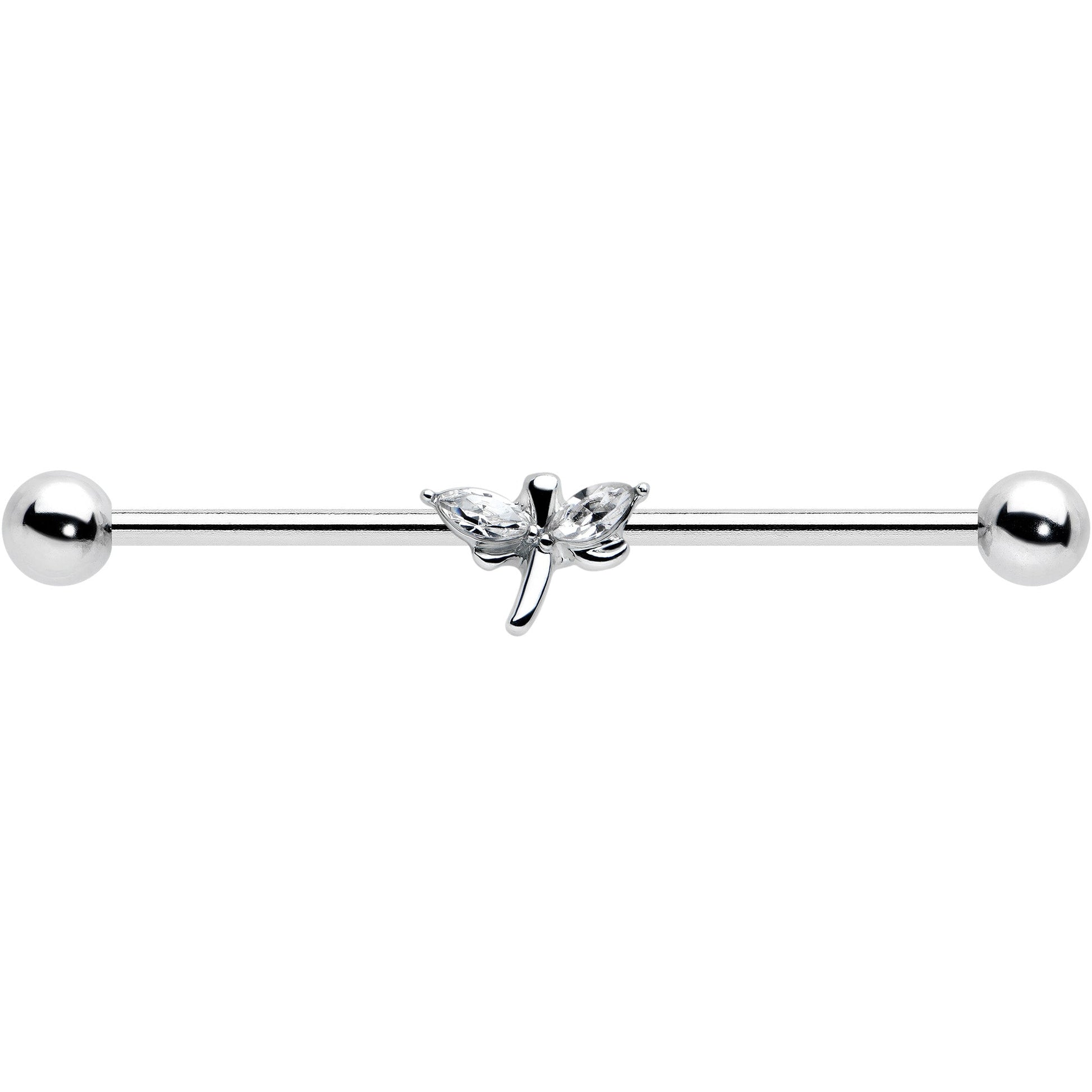 14G Clear Gem Simple Stylized Dragonfly Industrial Barbell 38mm
