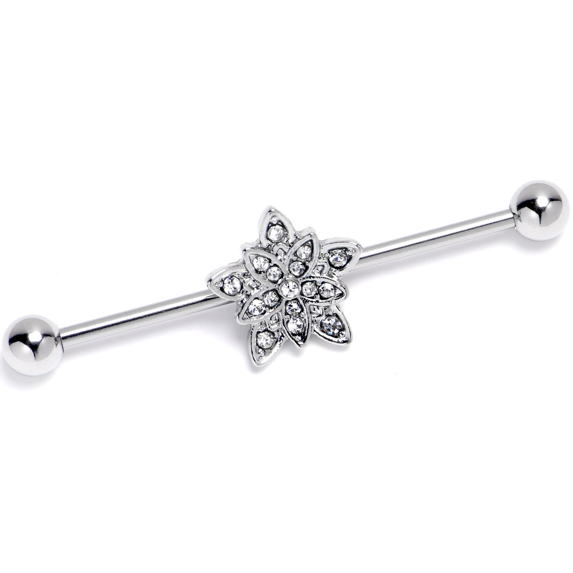 14 Gauge Clear Gem Snowflake Flower Industrial Barbell 38mm