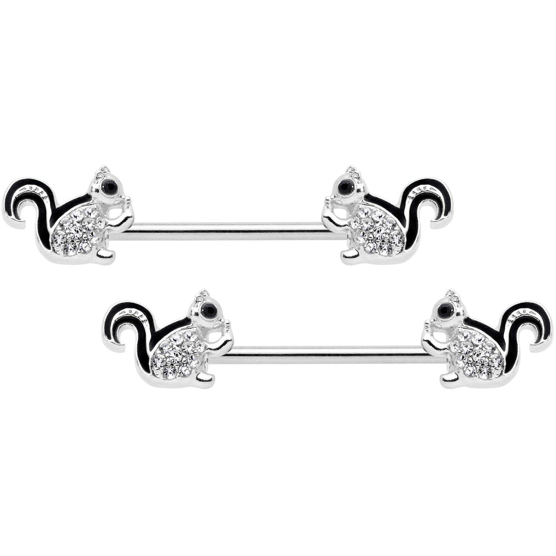14G Clear Gem Squirrel BCR Barbell Nipple Ring Set of 4