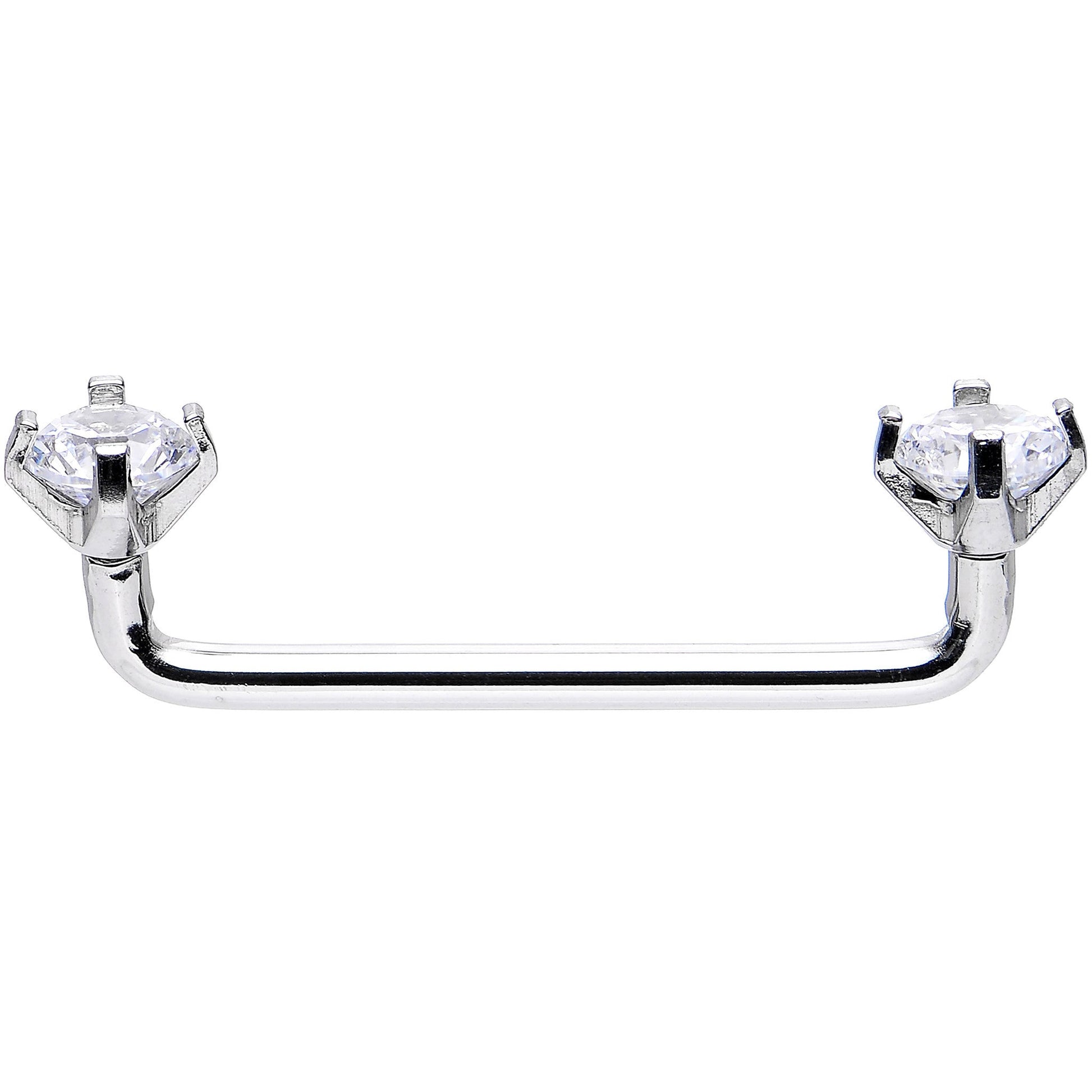 14G Clear Prong Gem 3/4 Steel Staple Surface Barbell 2mm Rise
