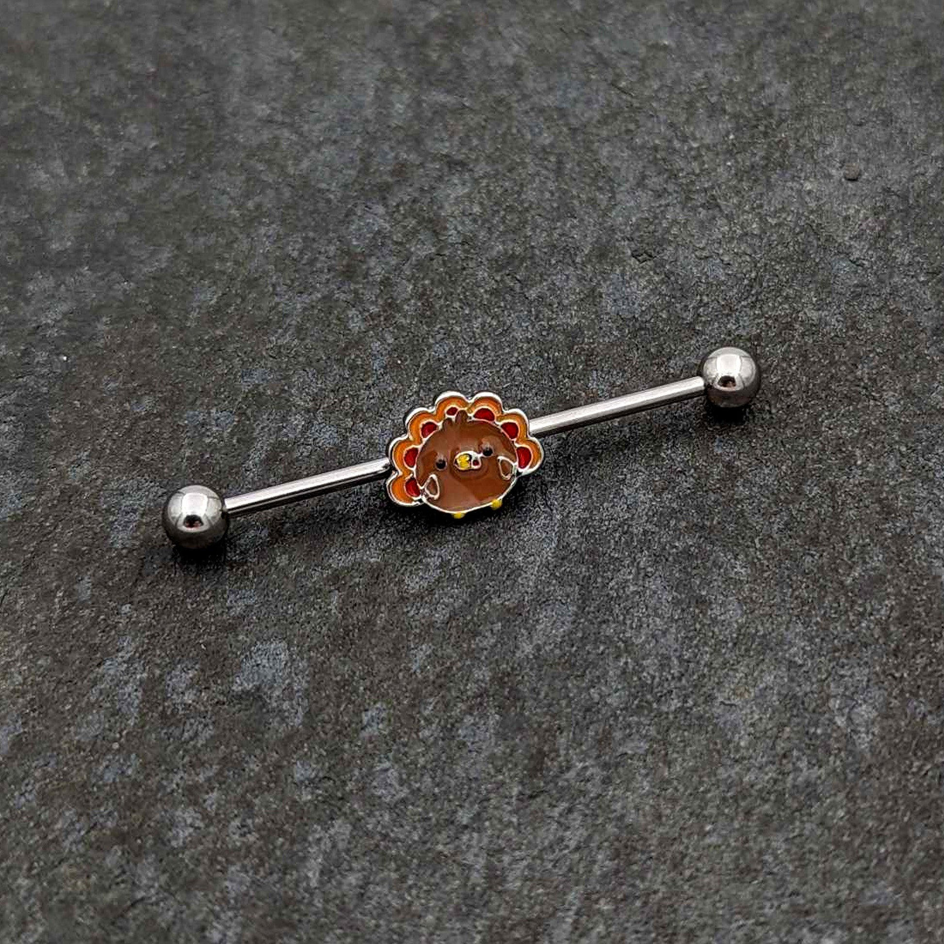 14 Gauge Cute Colorful Turkey Thanksgiving Industrial Barbell 38mm