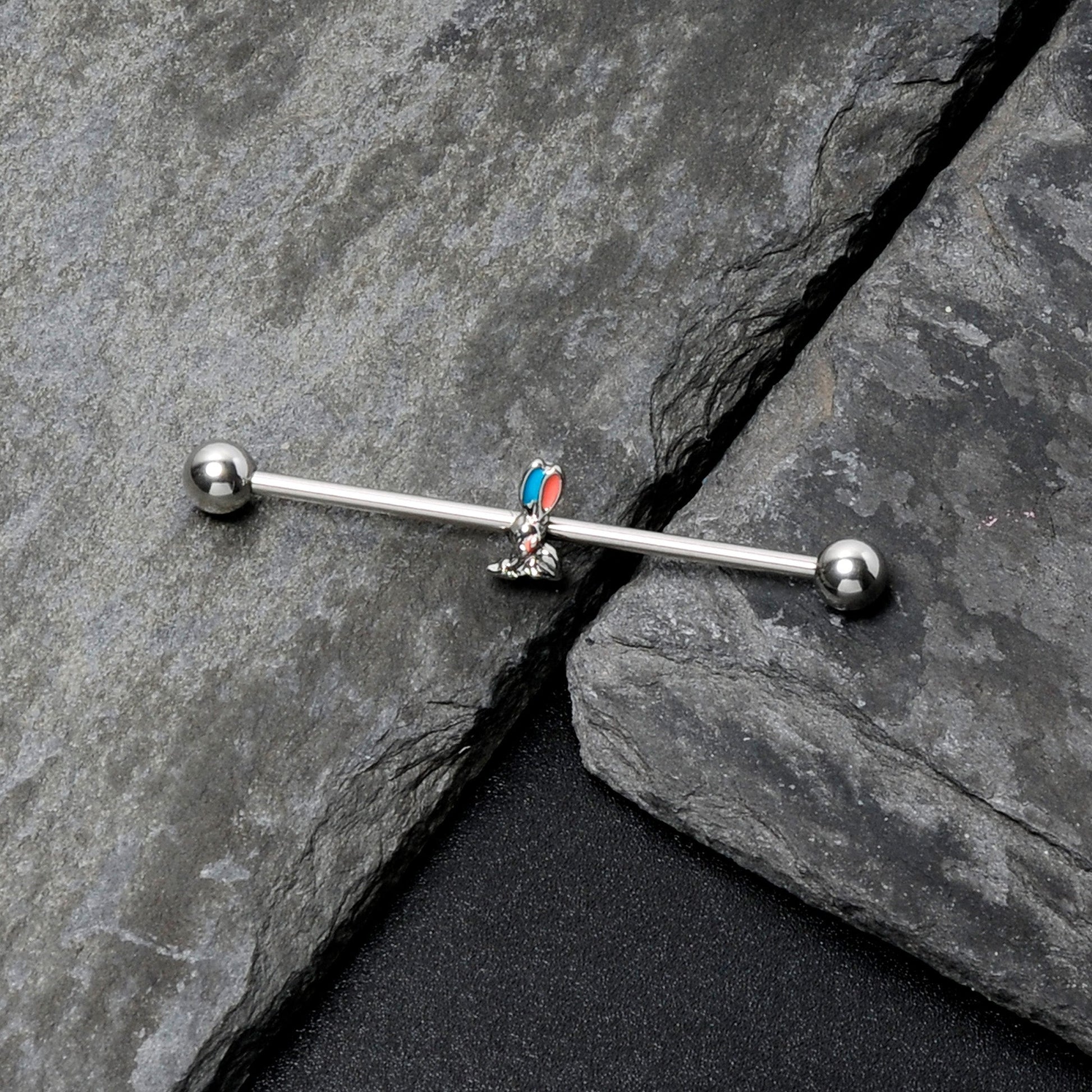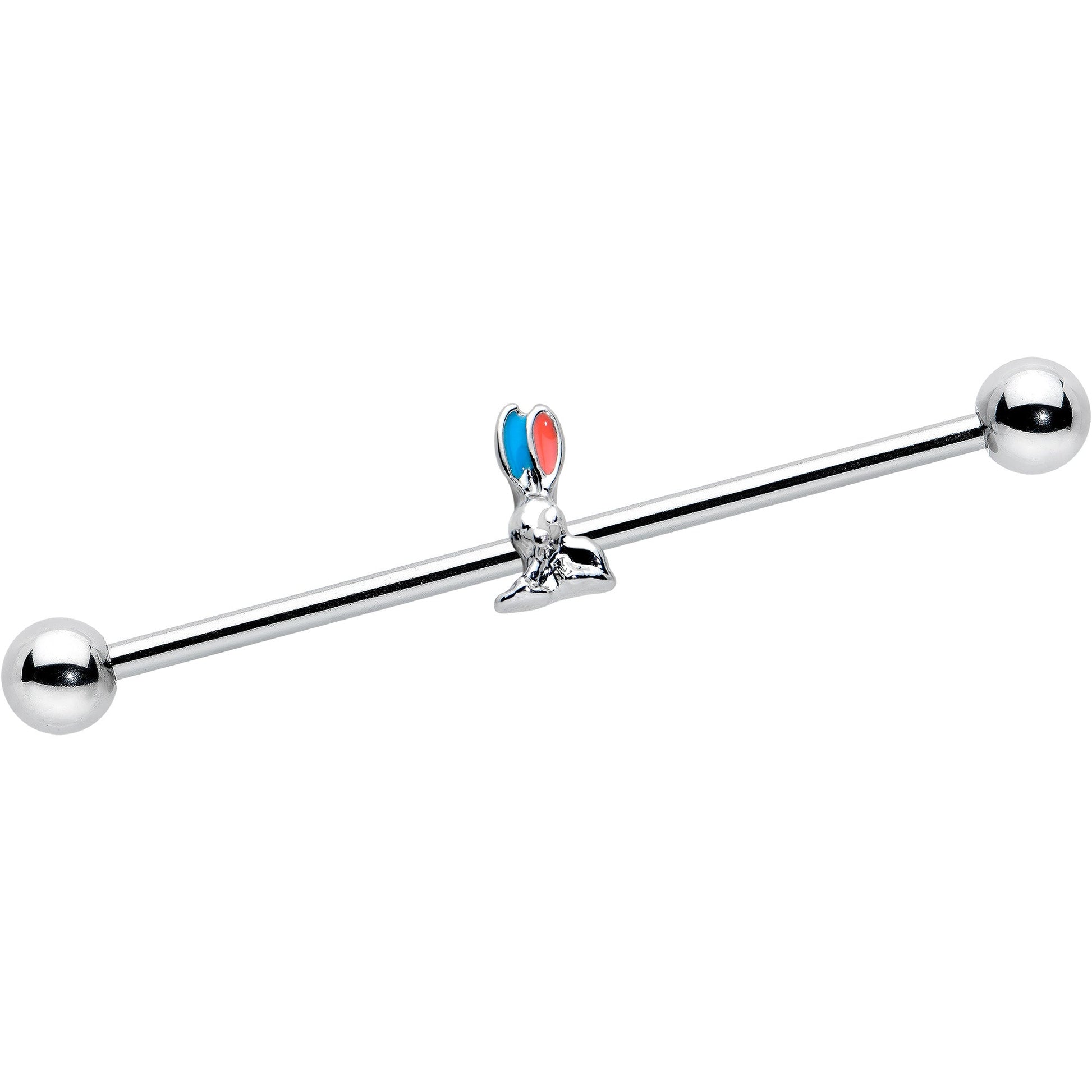 14G Easter Bunny Red Blue Ears Industrial Barbell 38mm