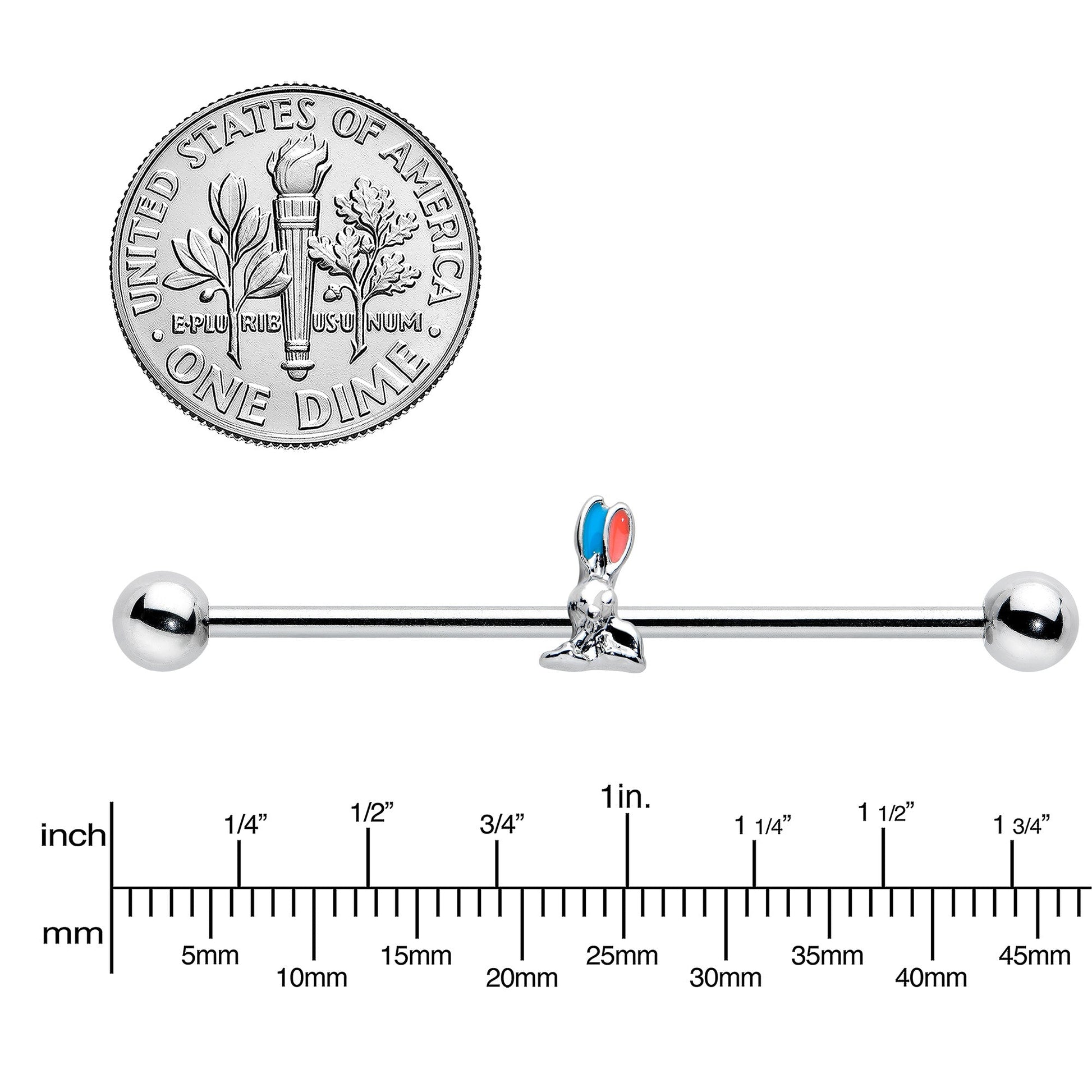 14 Gauge Easter Bunny Red Blue Ears Industrial Barbell 38mm